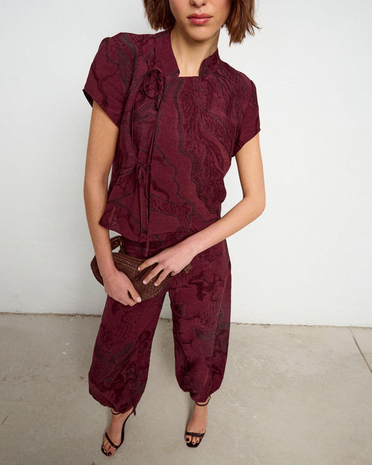 • Pantalón Goma Puño Estampado Granate