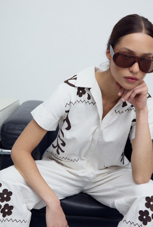 • Jeans Bajo Bordados Azul