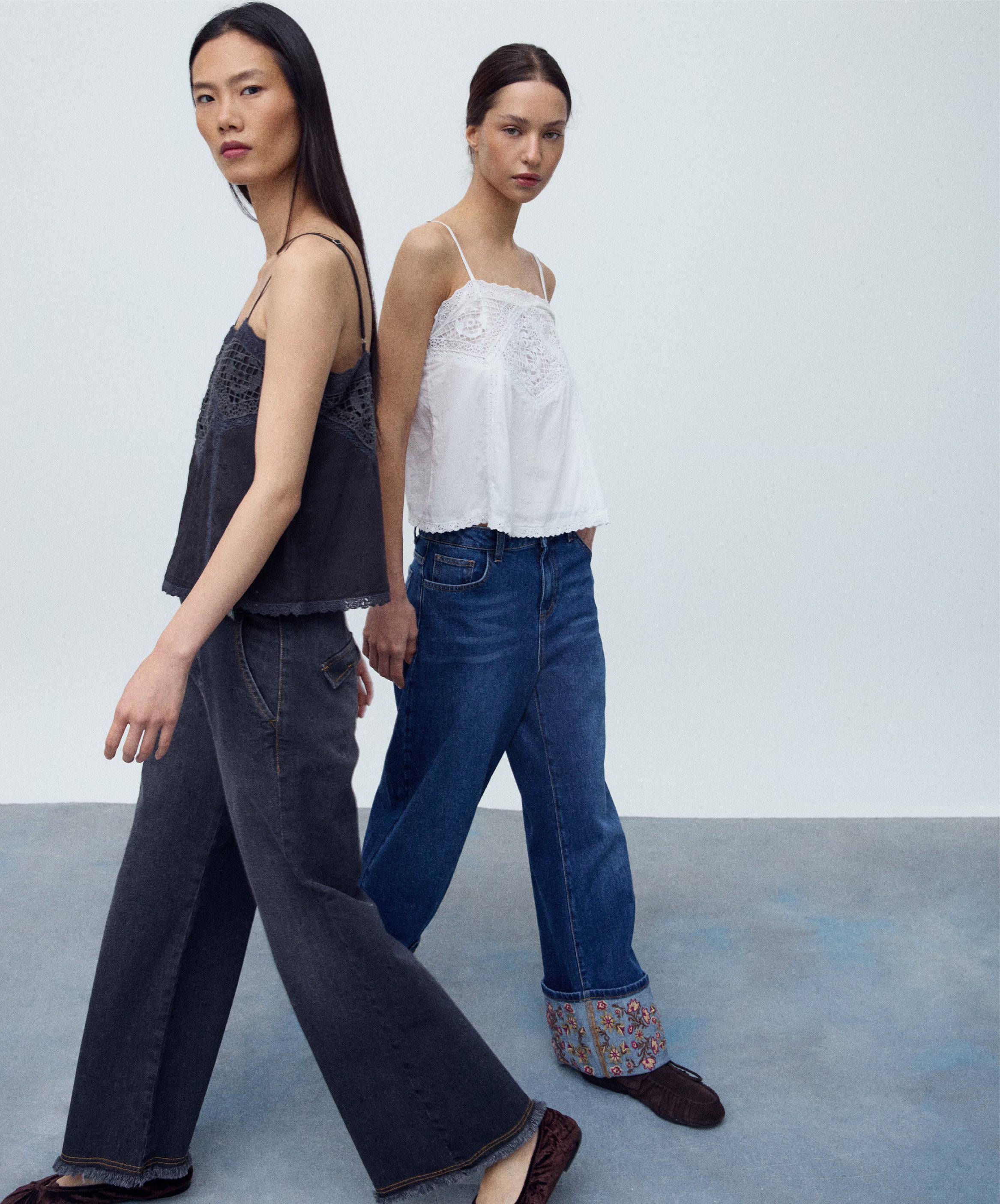 • Jeans Cinturilla Doble Botón Negro