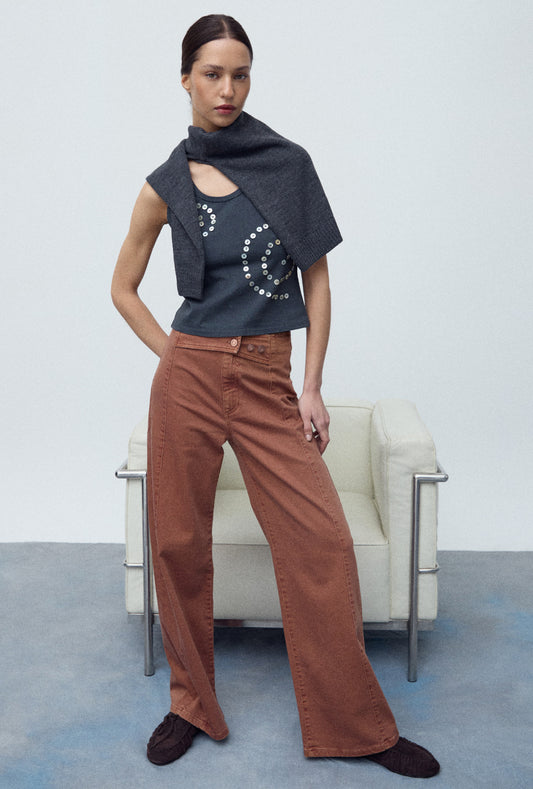 • Camiseta Sin Mangas Hombreras Marrón