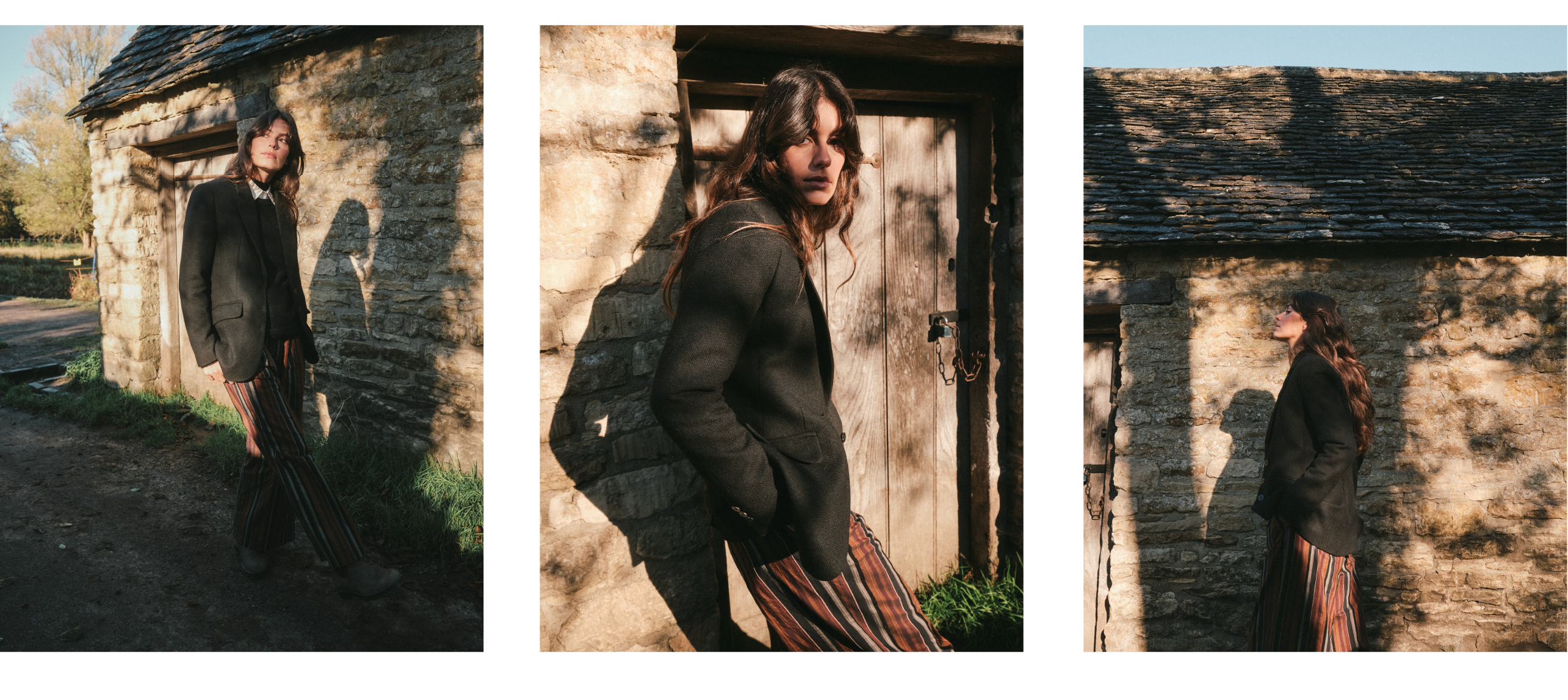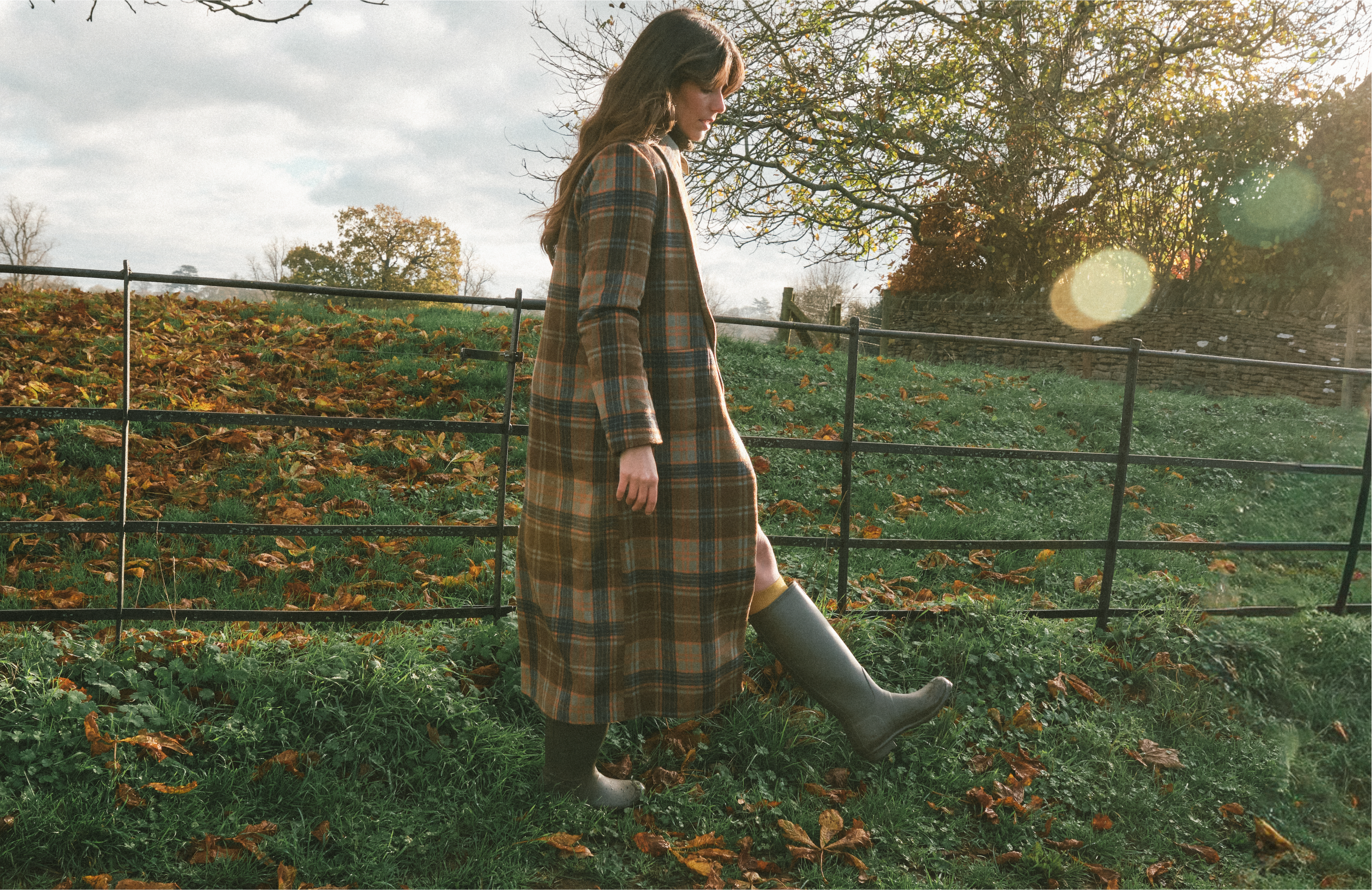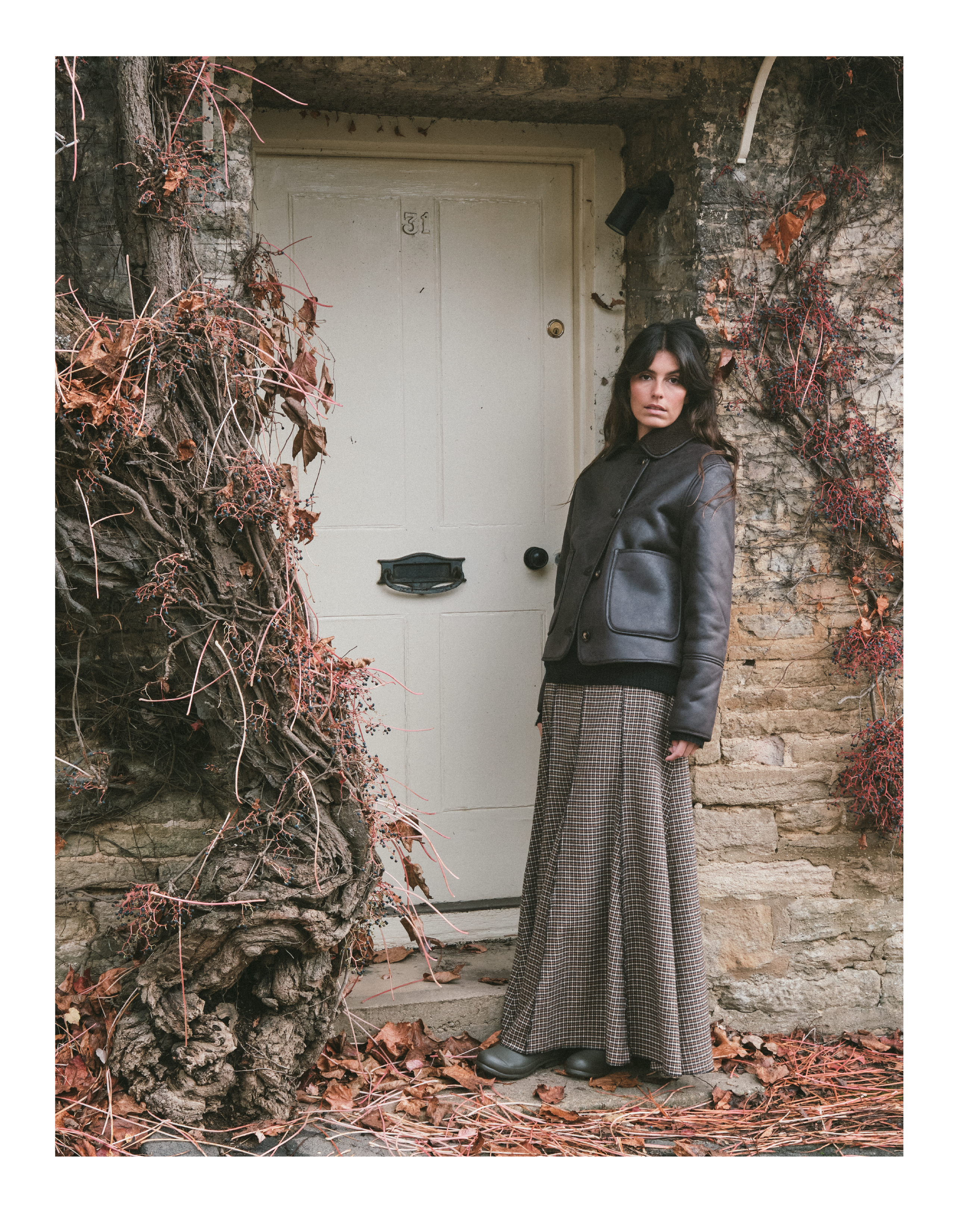 • Falda Larga Nervios Estampado Cuadros Marrón