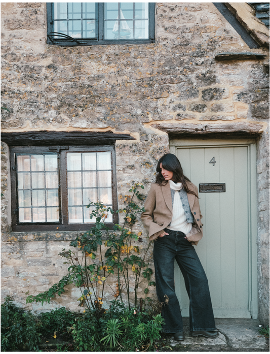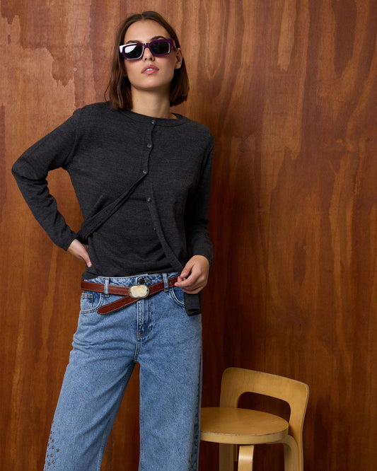 • Chaqueta Botones Puntilla Mezcla Lana Marrón