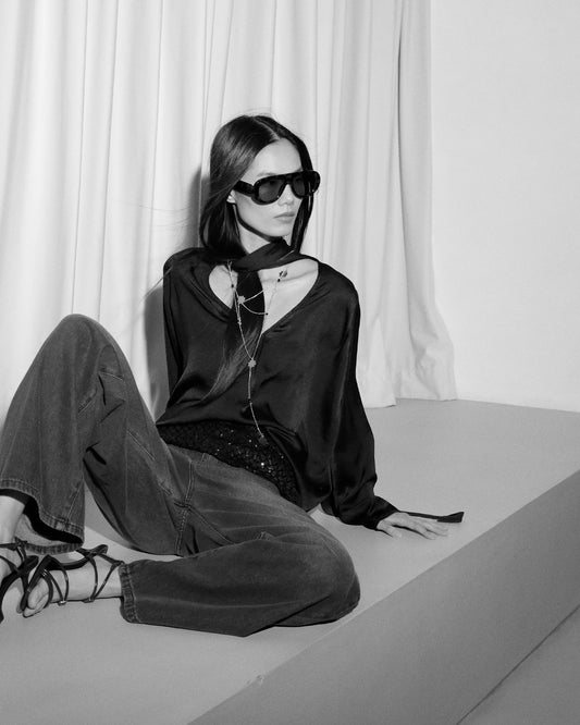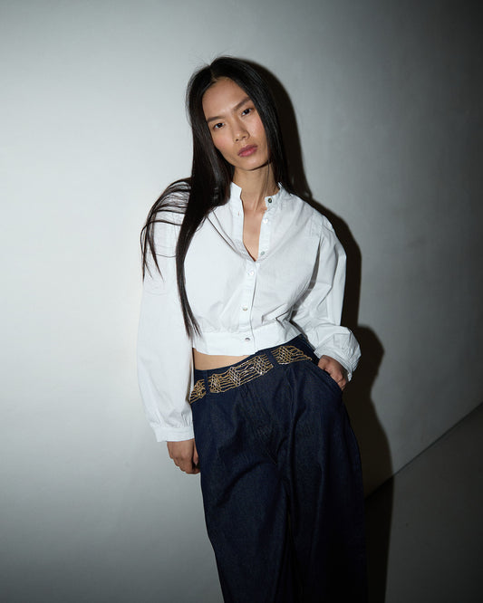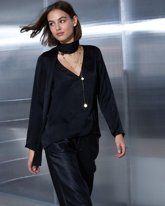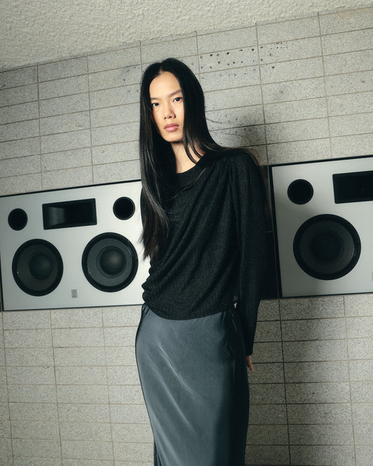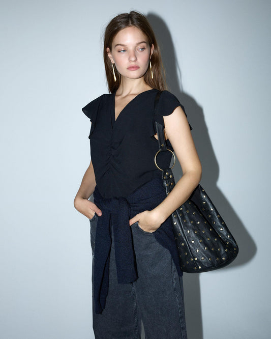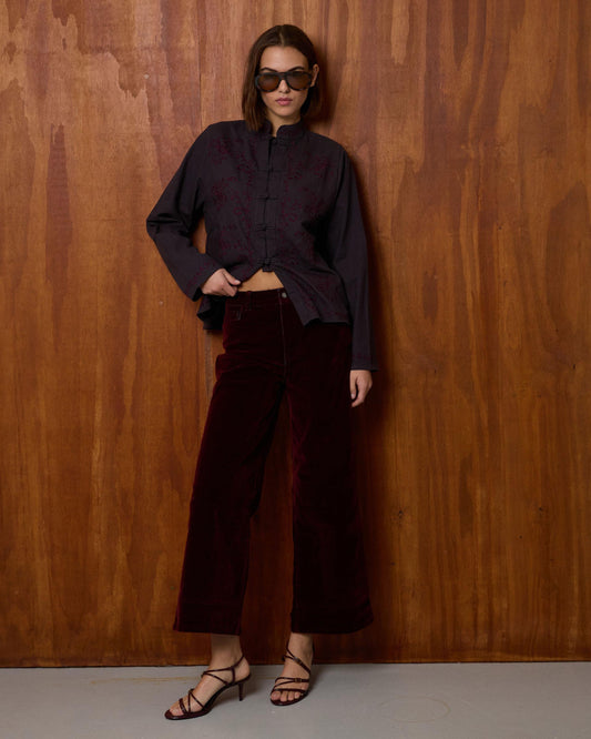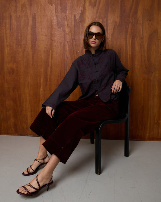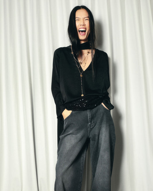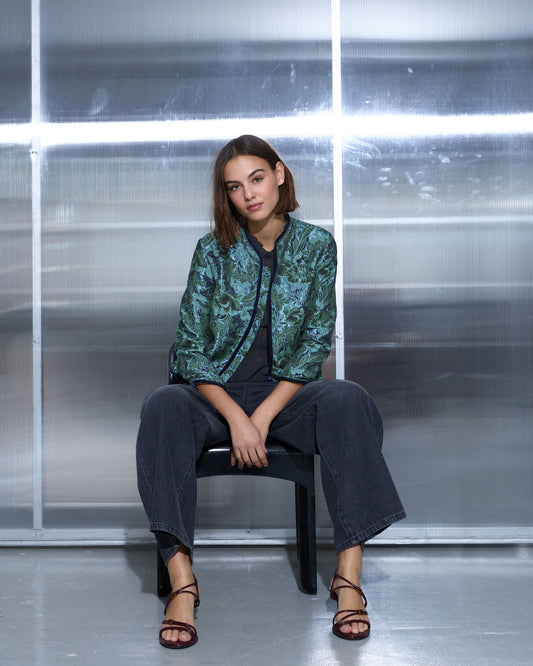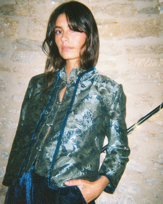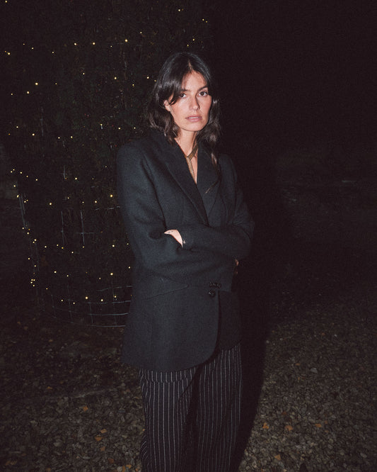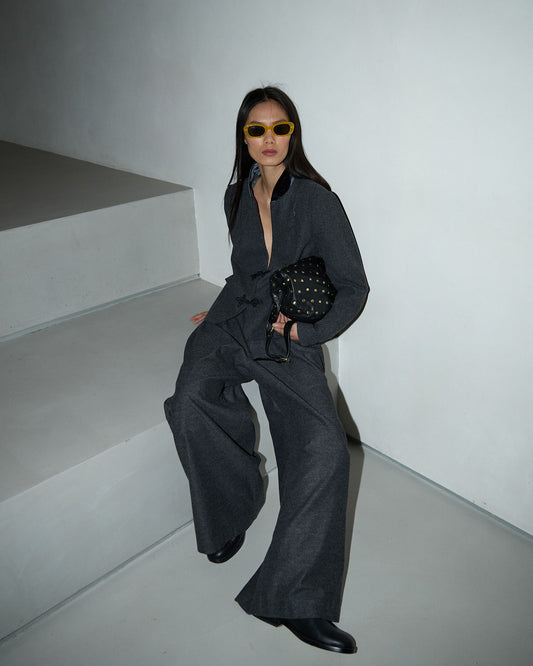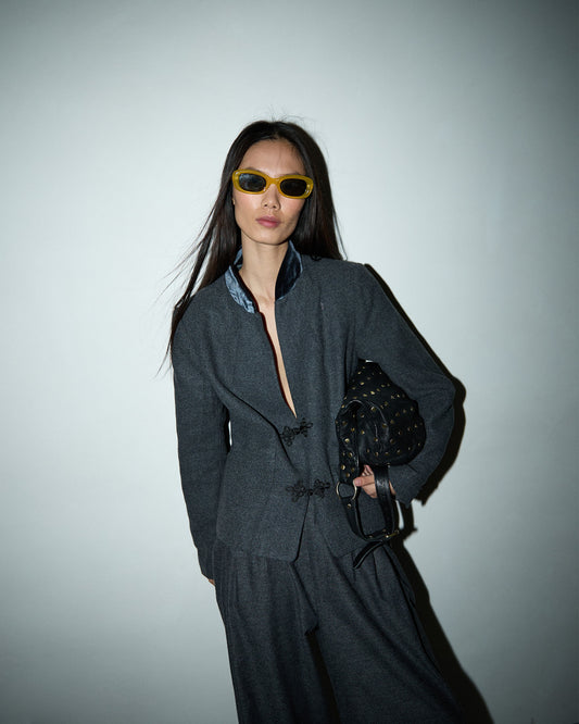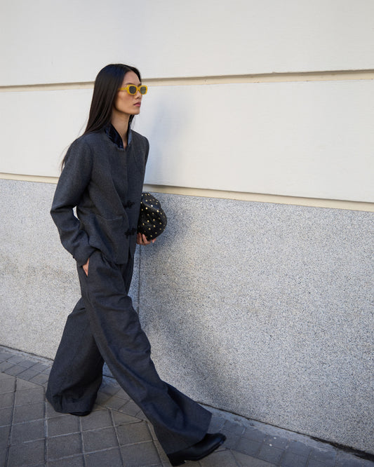 • Chaqueta Cuello Mao Mezcla Lana Negro