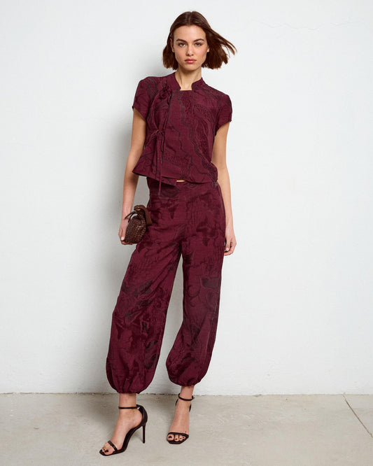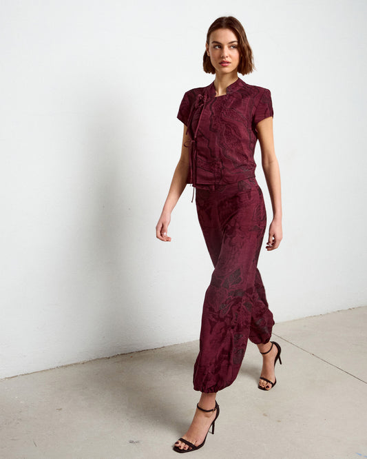 Pantalón Goma Puño Estampado Granate