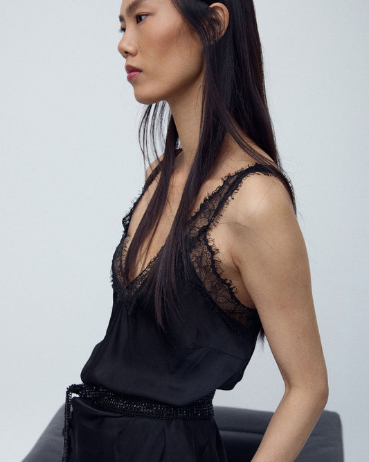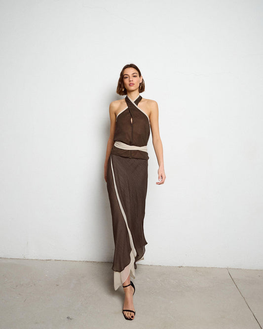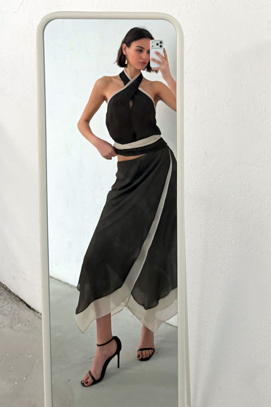 • Falda Volante Bajo Contraste Negro