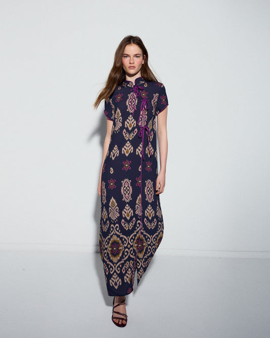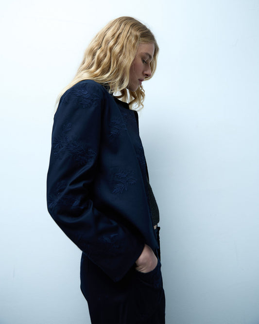 Falda Larga Nervios Estampado Floral Azul Marino