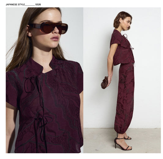 • Pantalón Goma Puño Estampado Granate