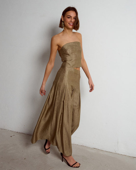 • Falda Gasa Contraste Verde Oscuro