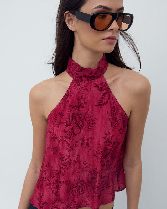 • Top Gasa Contraste Verde Oscuro