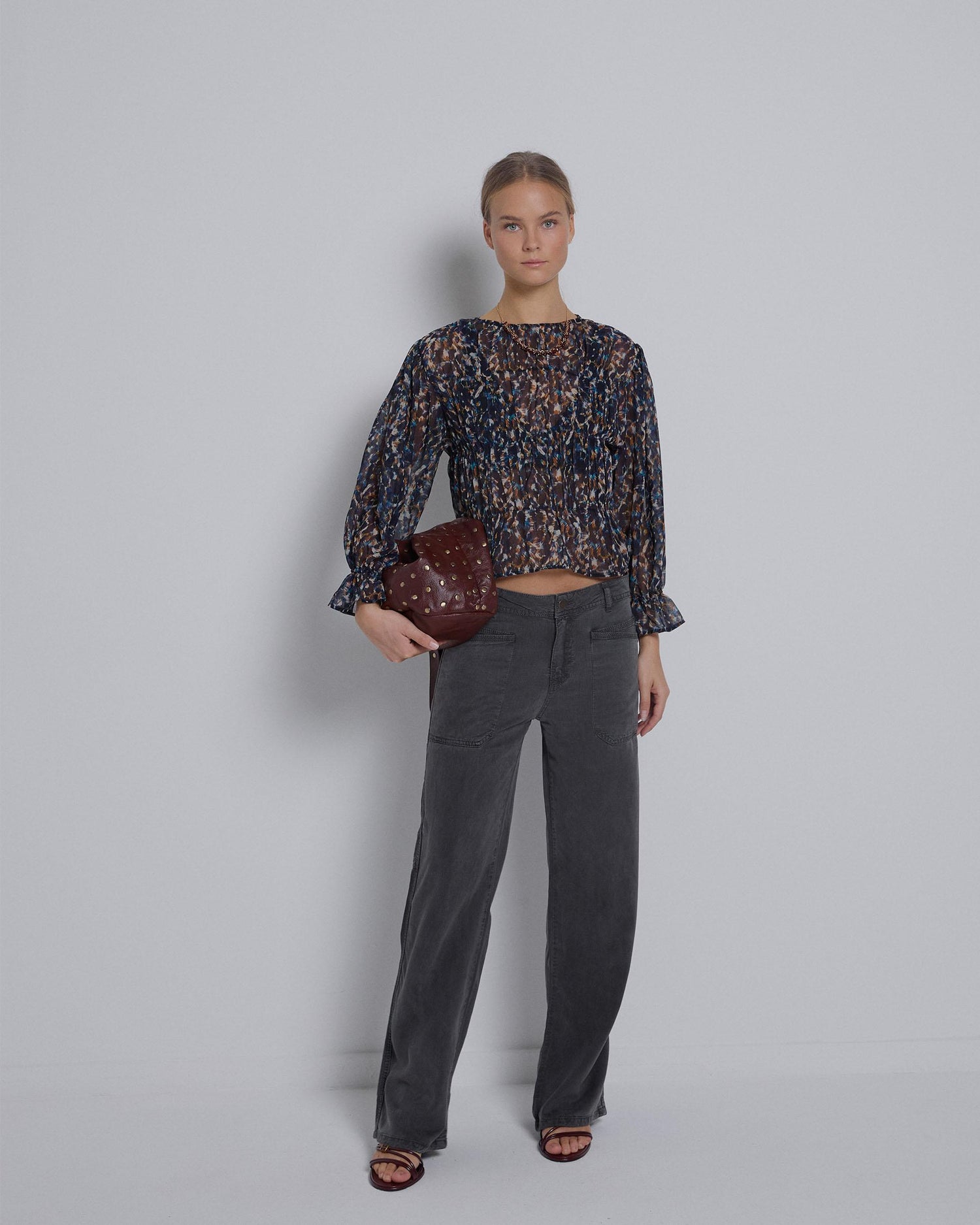 • Top Sin Tirantes Tejido Rayas Lurex Azul Oscuro