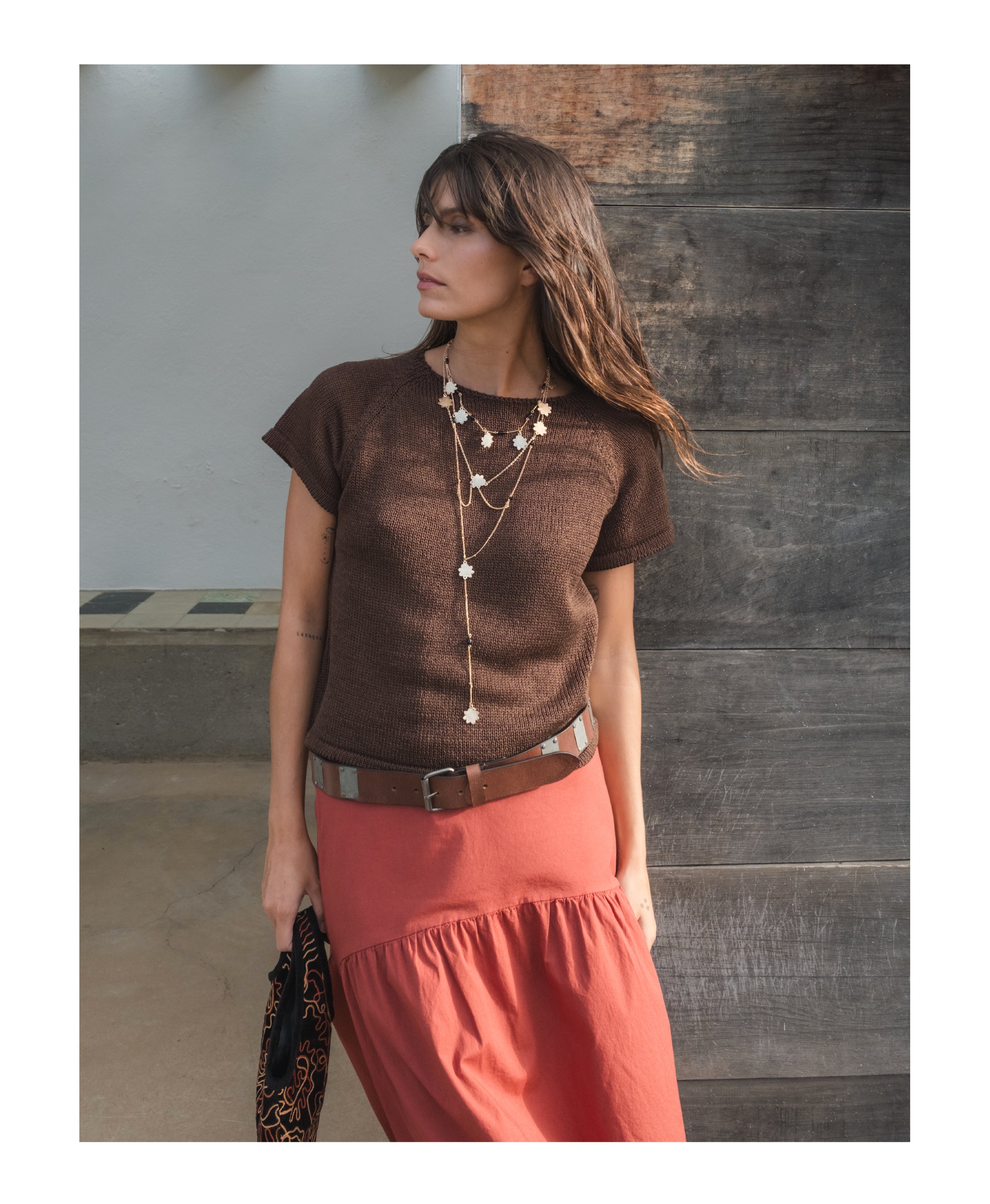 • Brown Short Sleeve Knit Top