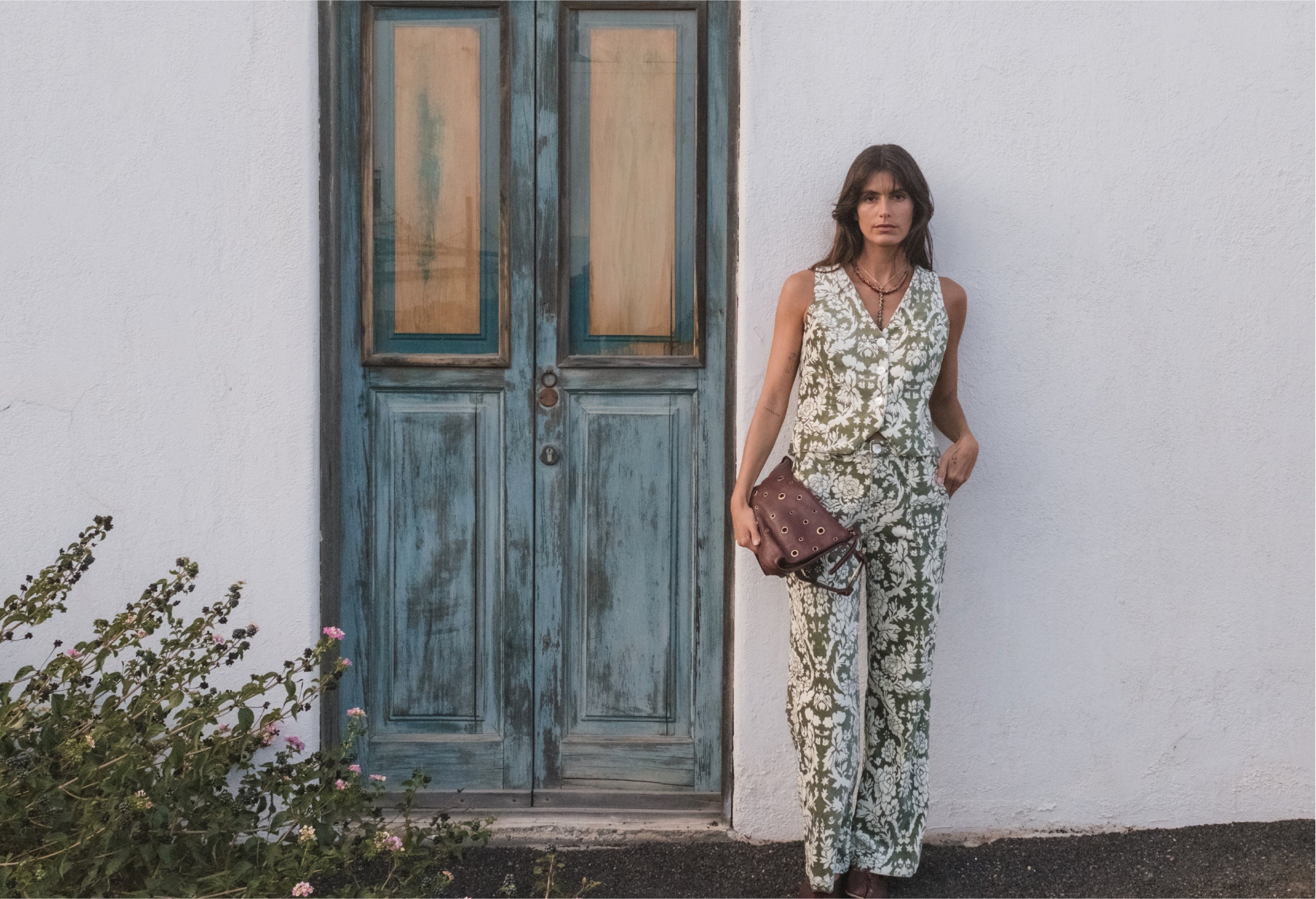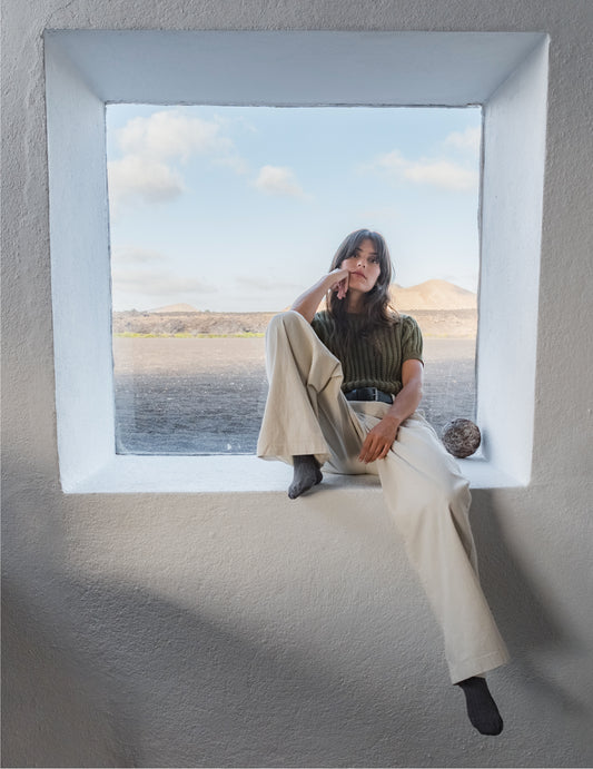 • Long Trousers with Dark Green Pleats