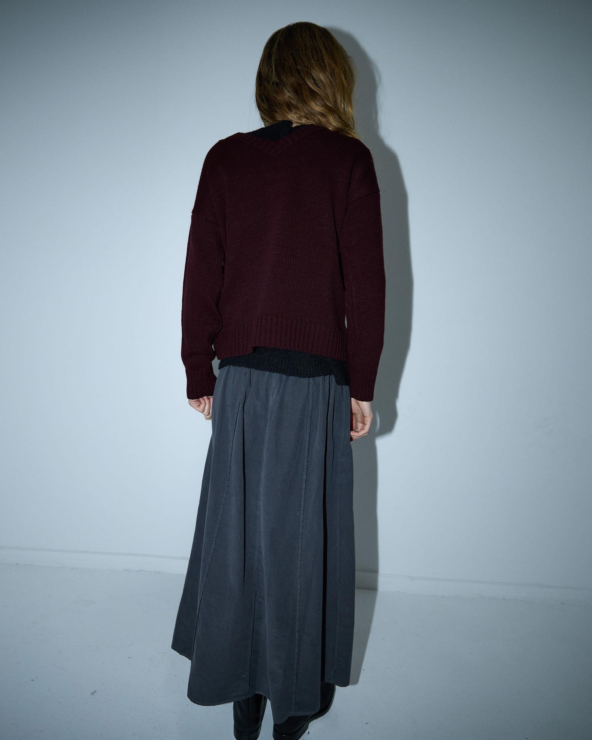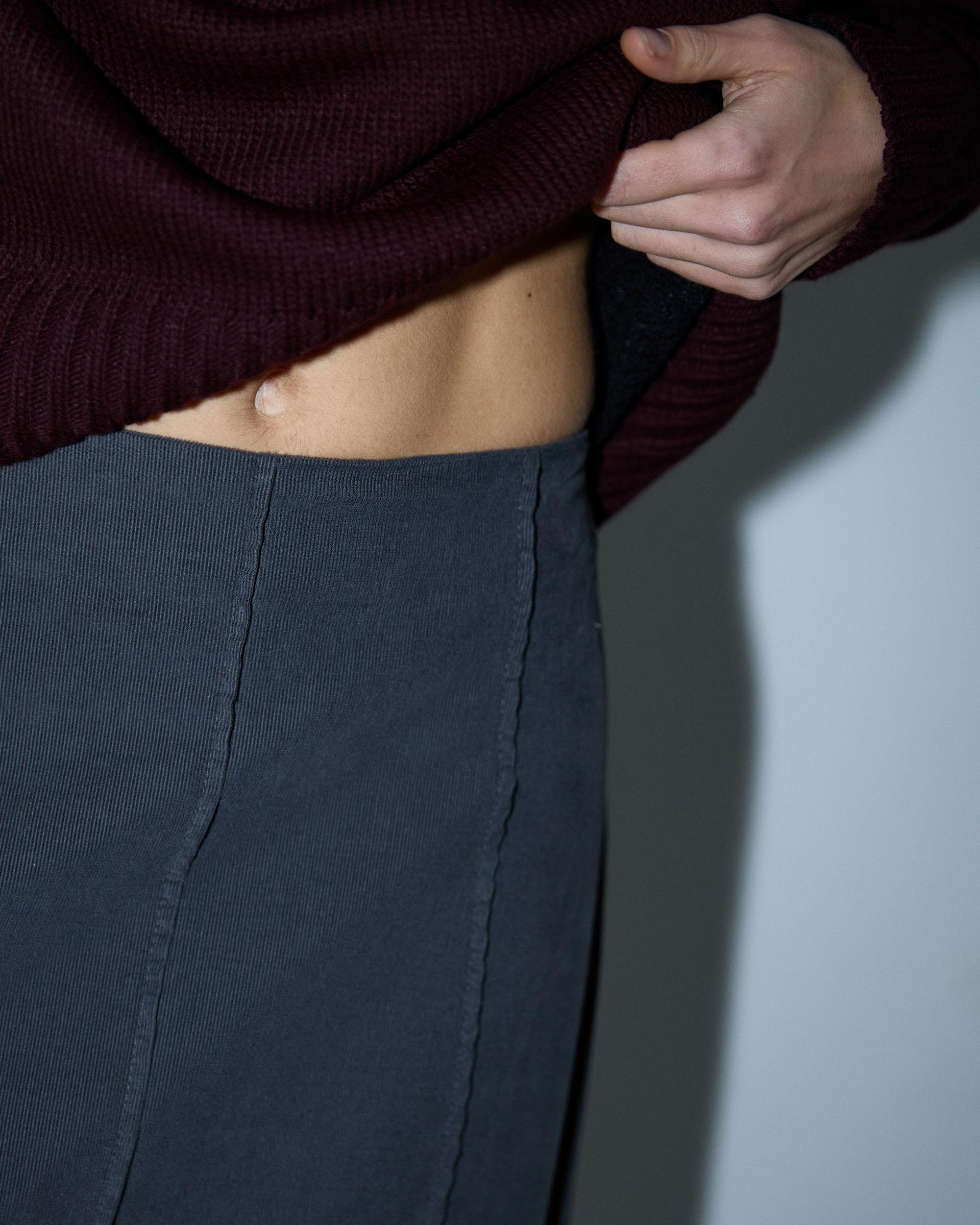 Long micro-corduroy skirt in anthracite color with stitching detail.