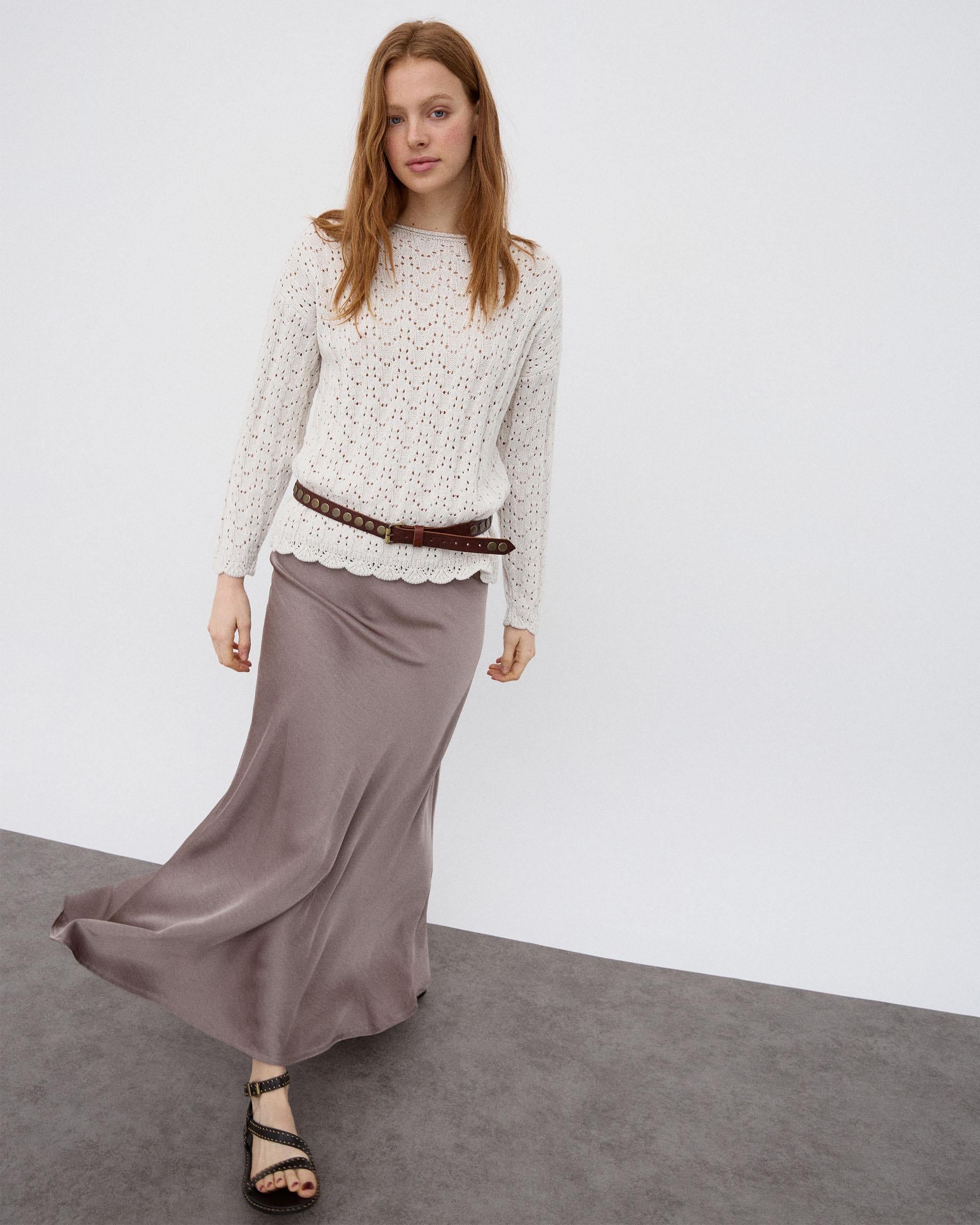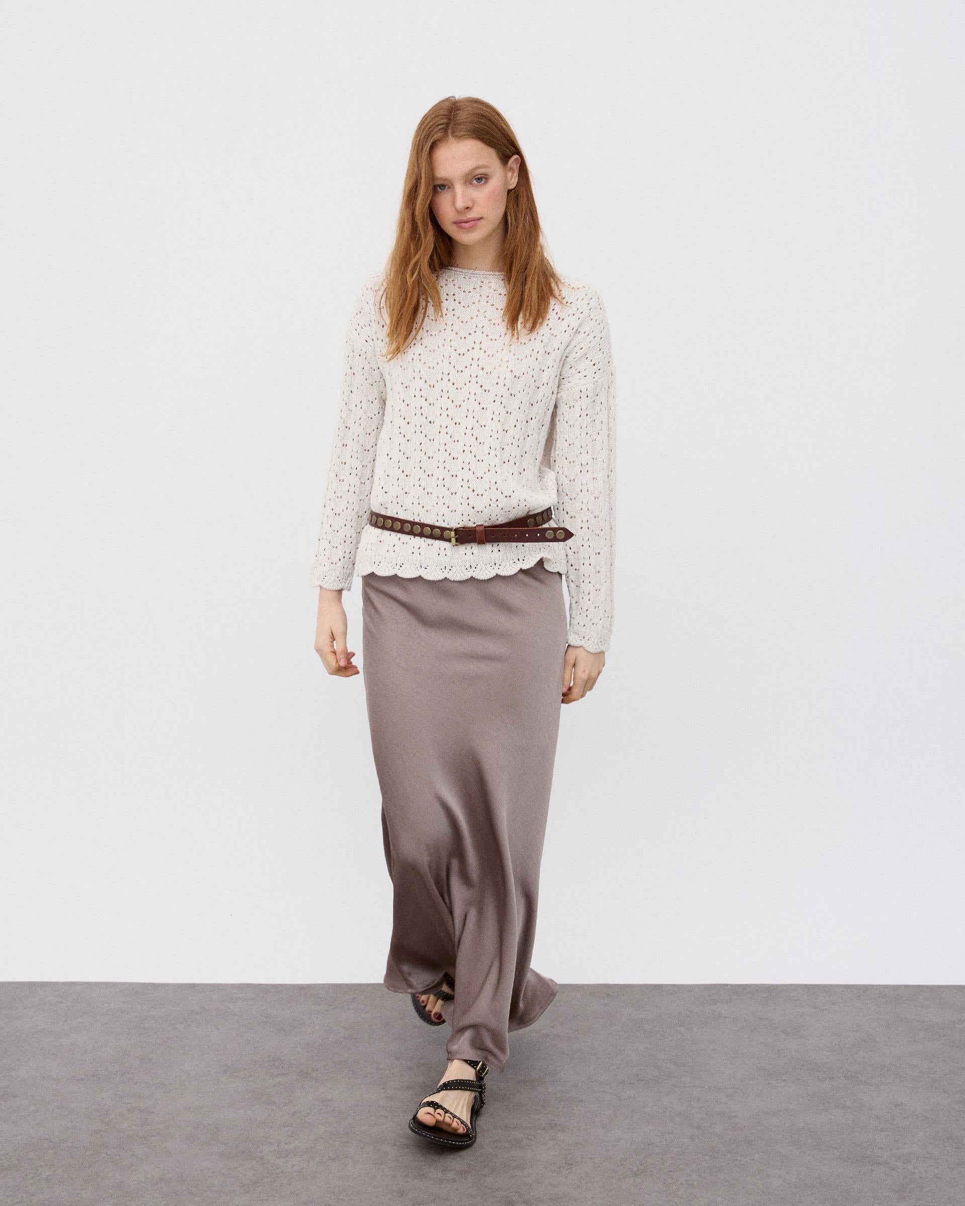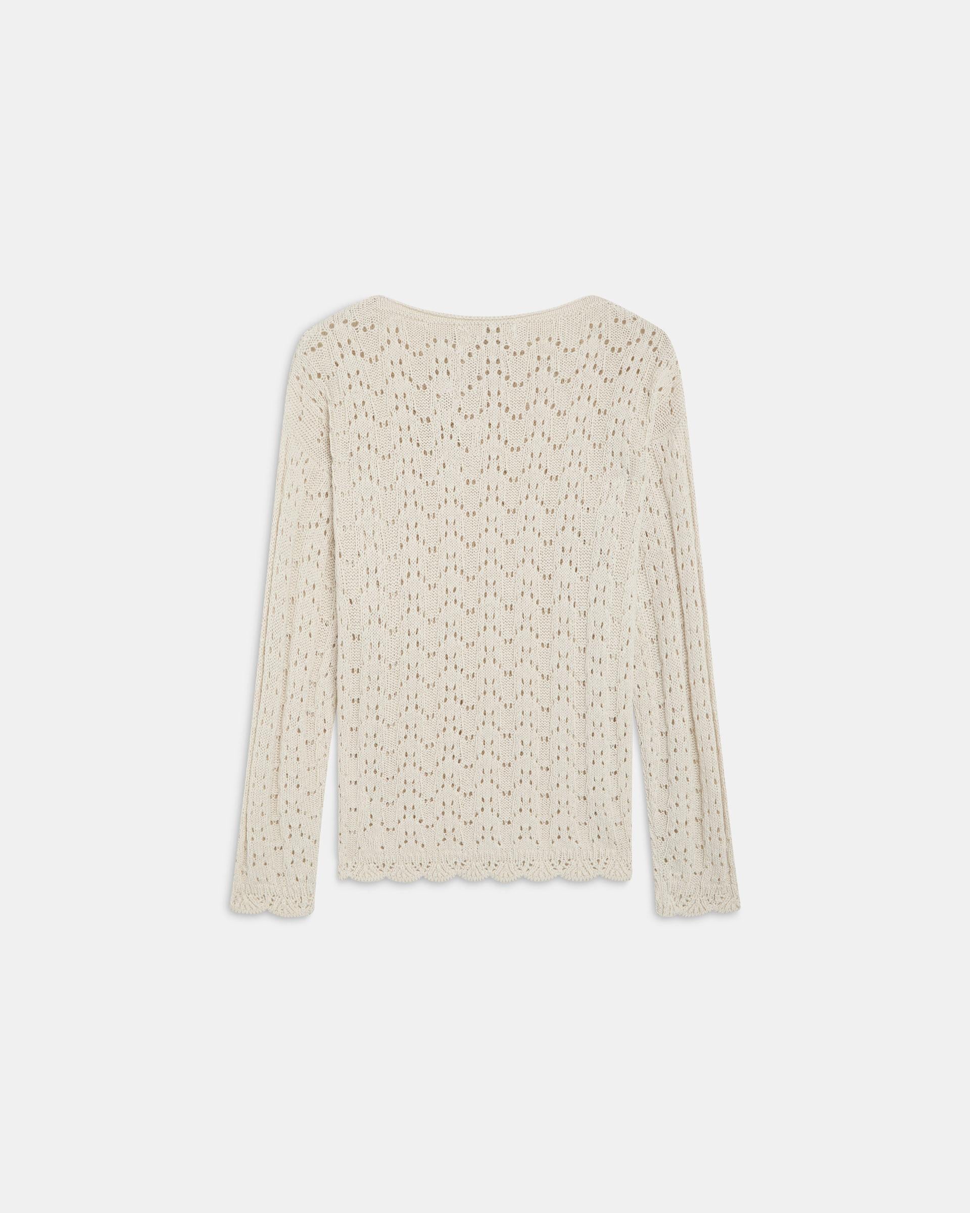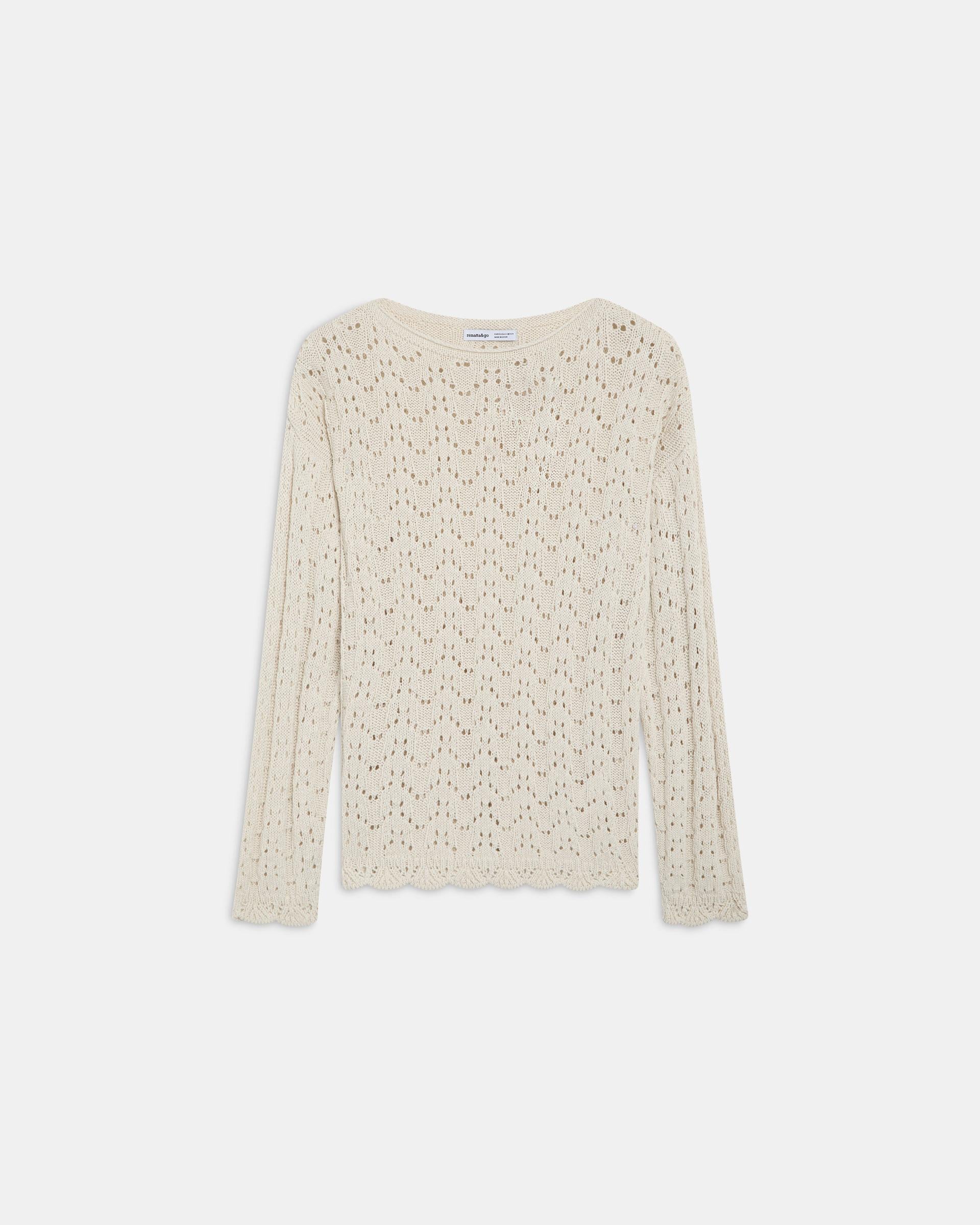 Jersey de punto con detalle de calados y cuello redondo, en color crudo.