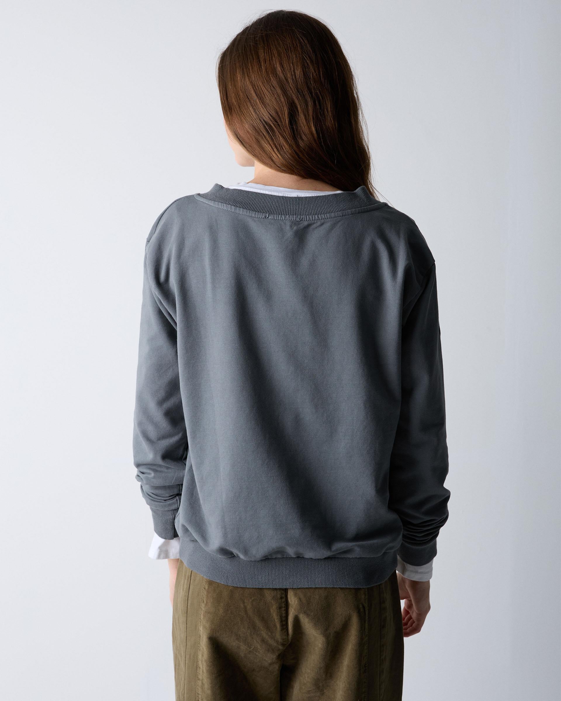 Long-sleeved sweatshirt without a hood, with a V-neck, in grey.