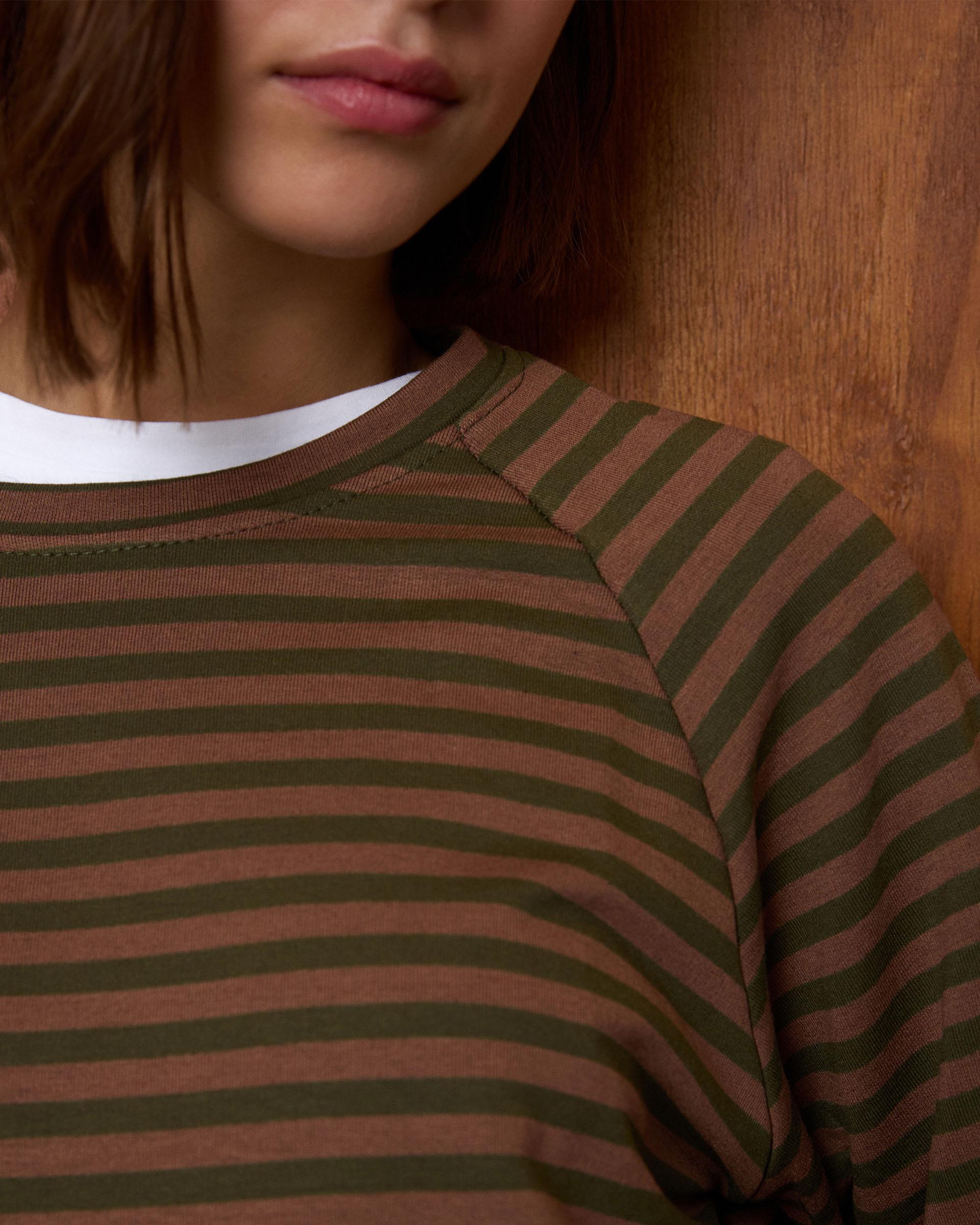 Long-sleeved sweatshirt with a striped print in green and dark beige.