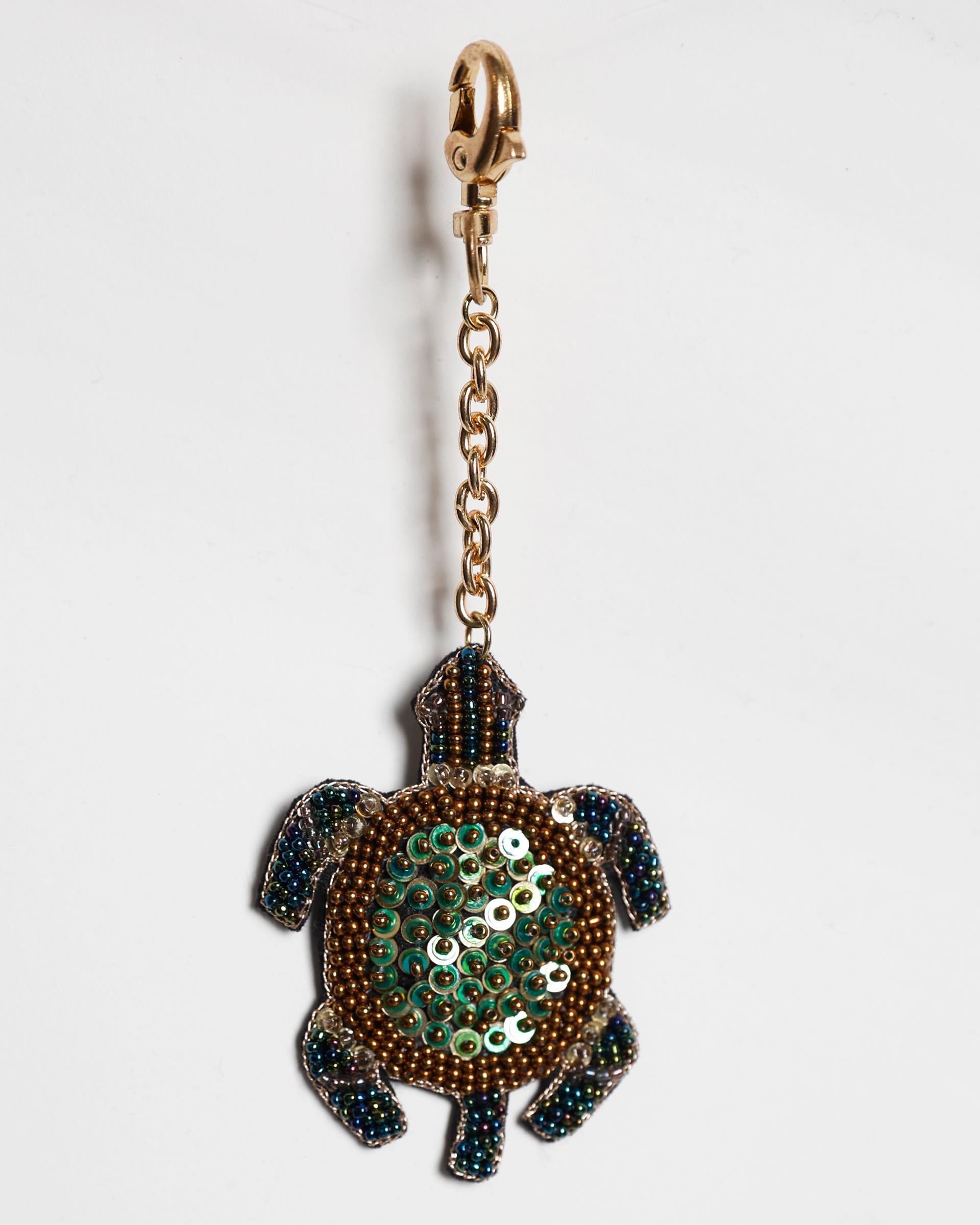 Llavero en forma de tortuga con abalorio, en tonos verdes.