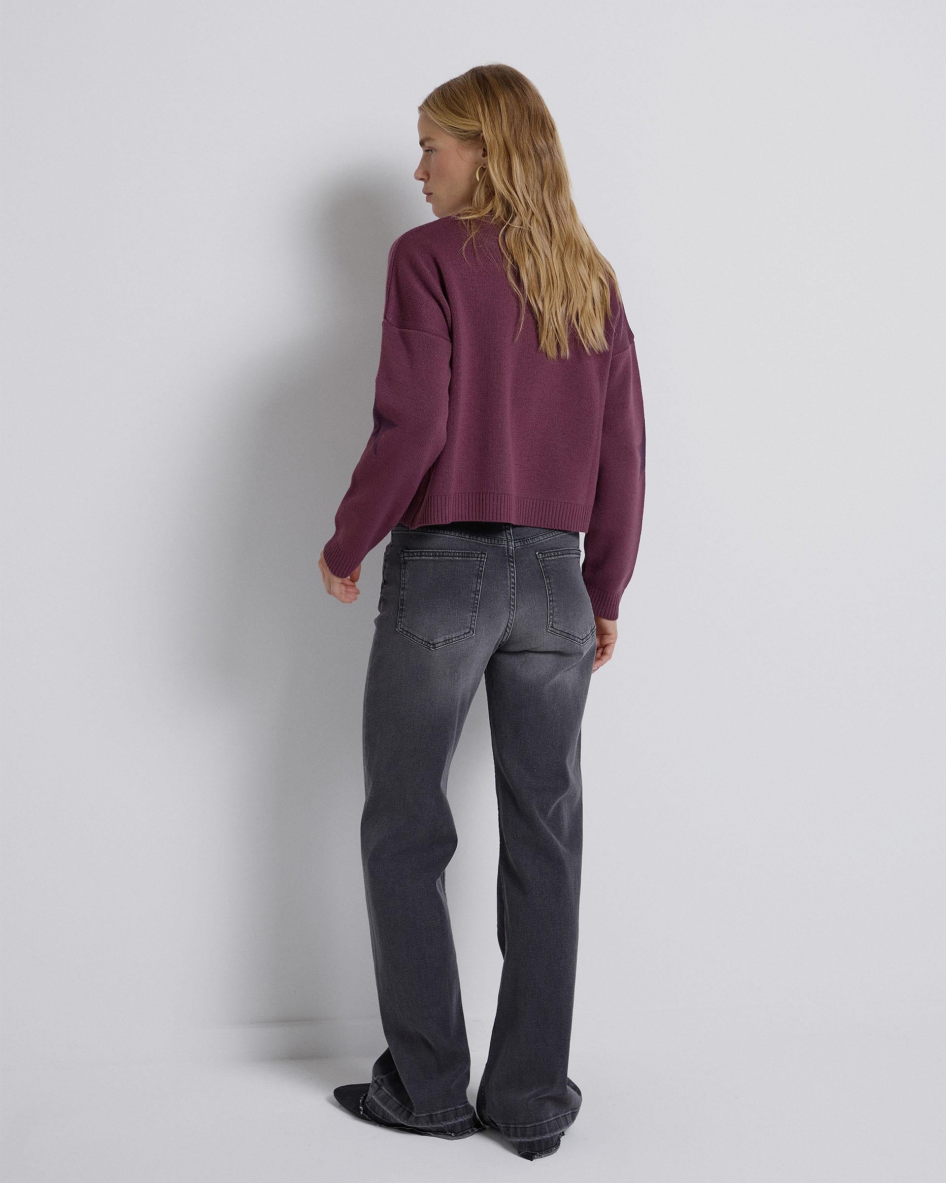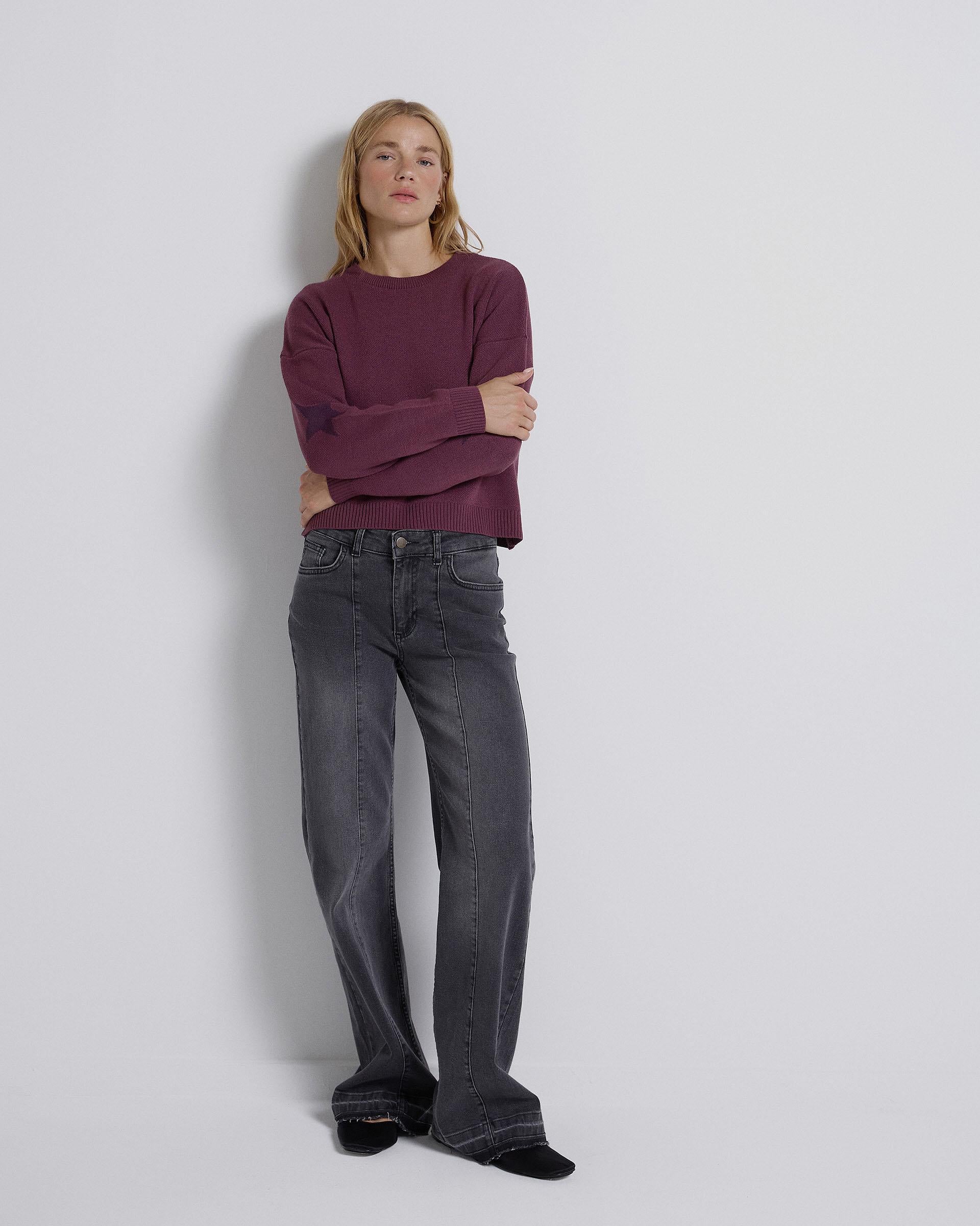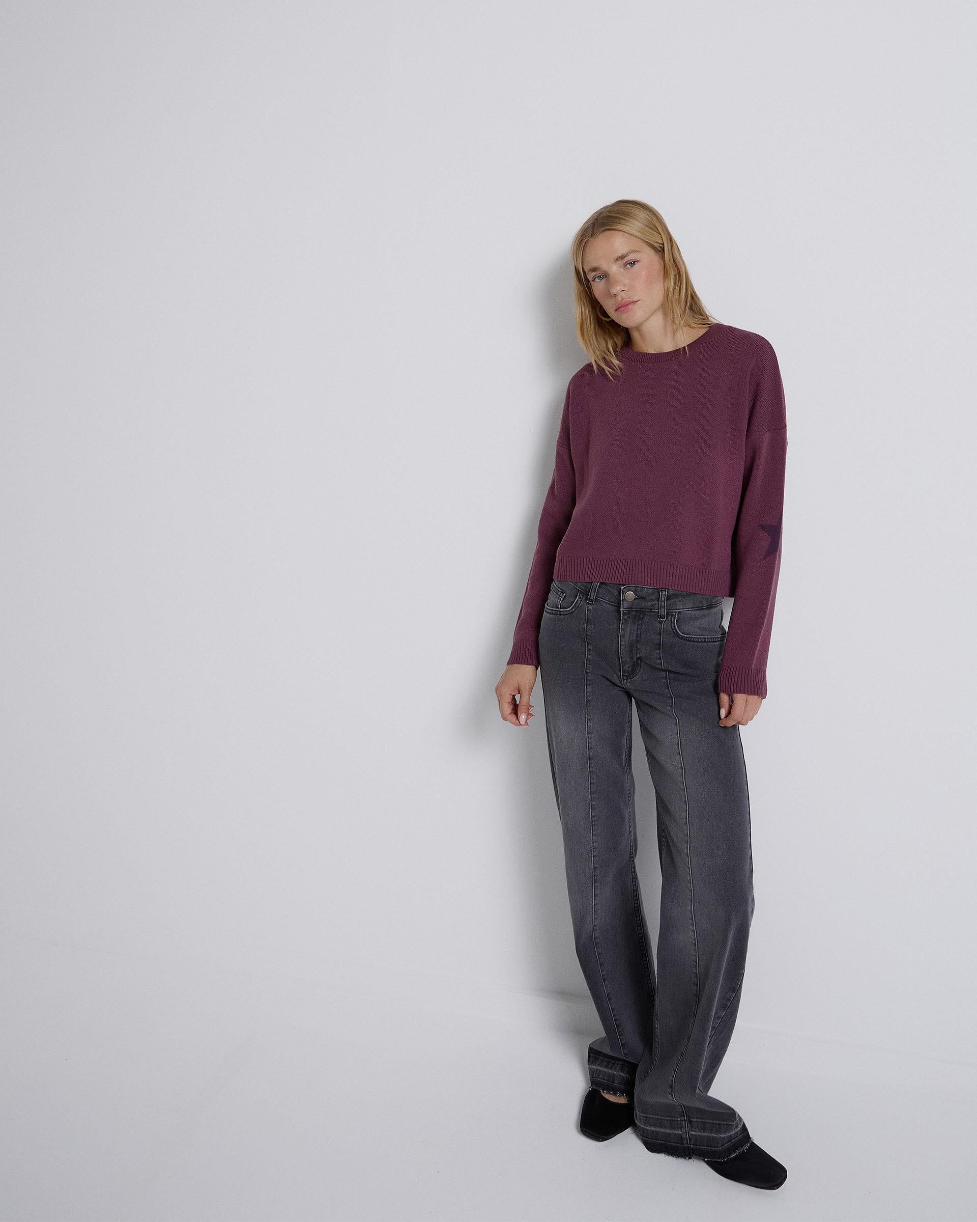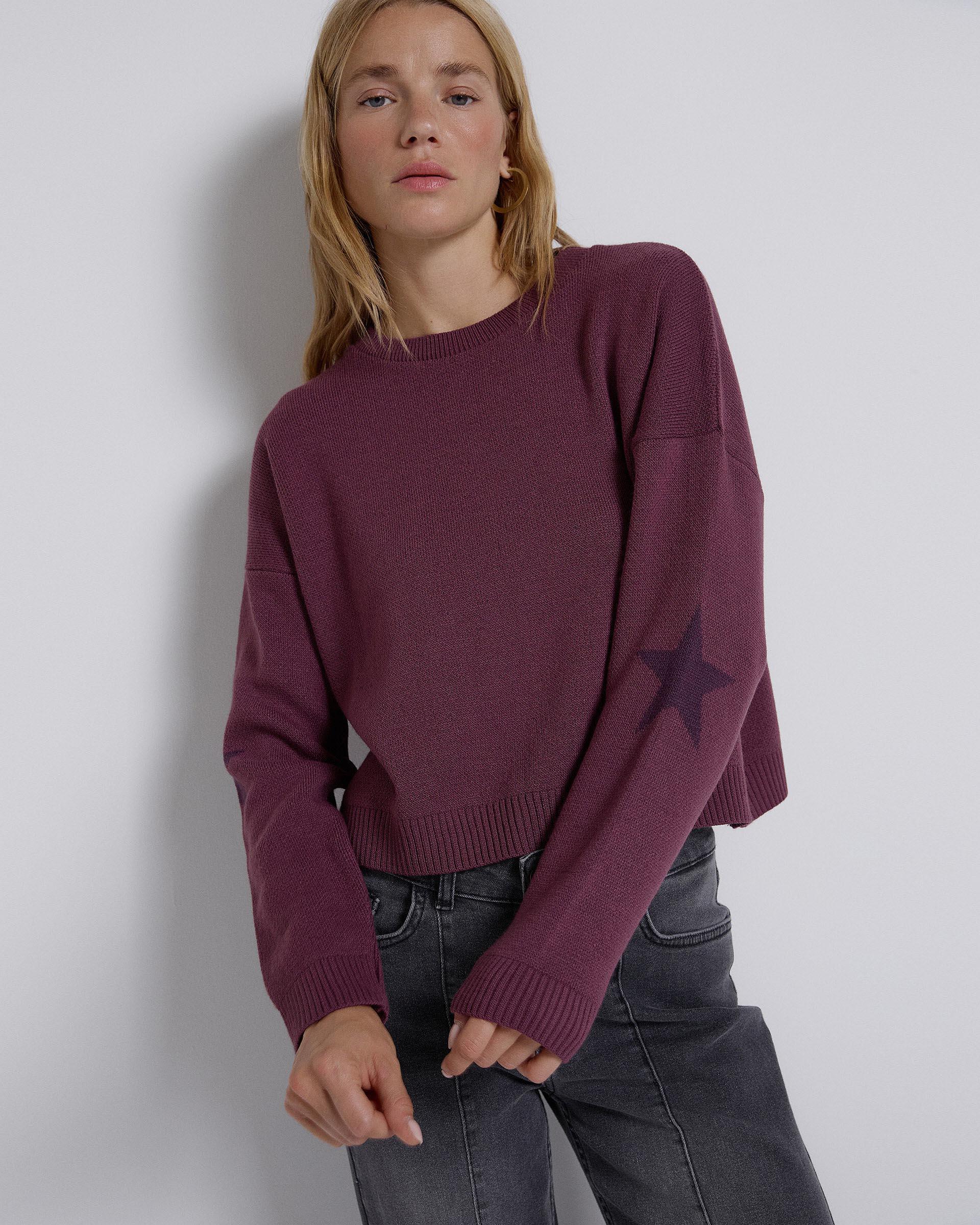 Knitted sweater with a round neck and contrasting stars on the elbows.