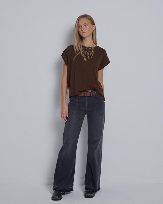 • Jeans with Pockets, Wide Leg Stitching, Black
