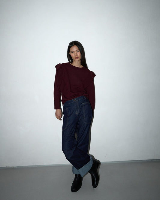 • Jeans with Pockets, Wide Leg, Blue Stitching
