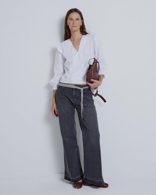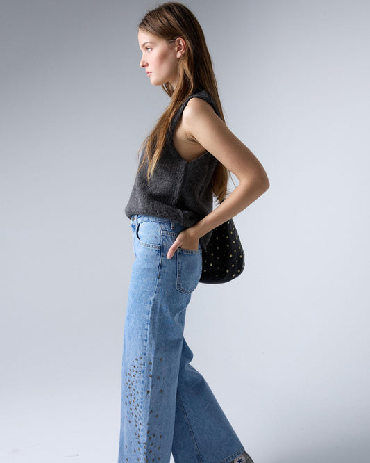 • Jeans with Pockets, Wide Leg, Blue Stitching