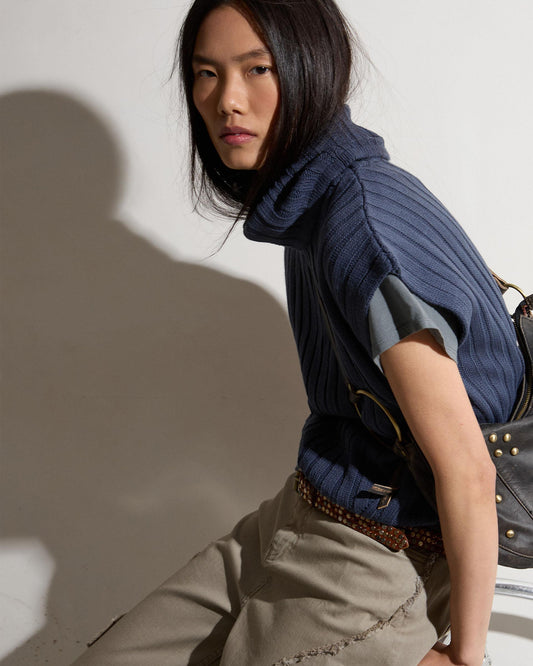 • Dark Blue Ribbed Turtleneck Knit Vest