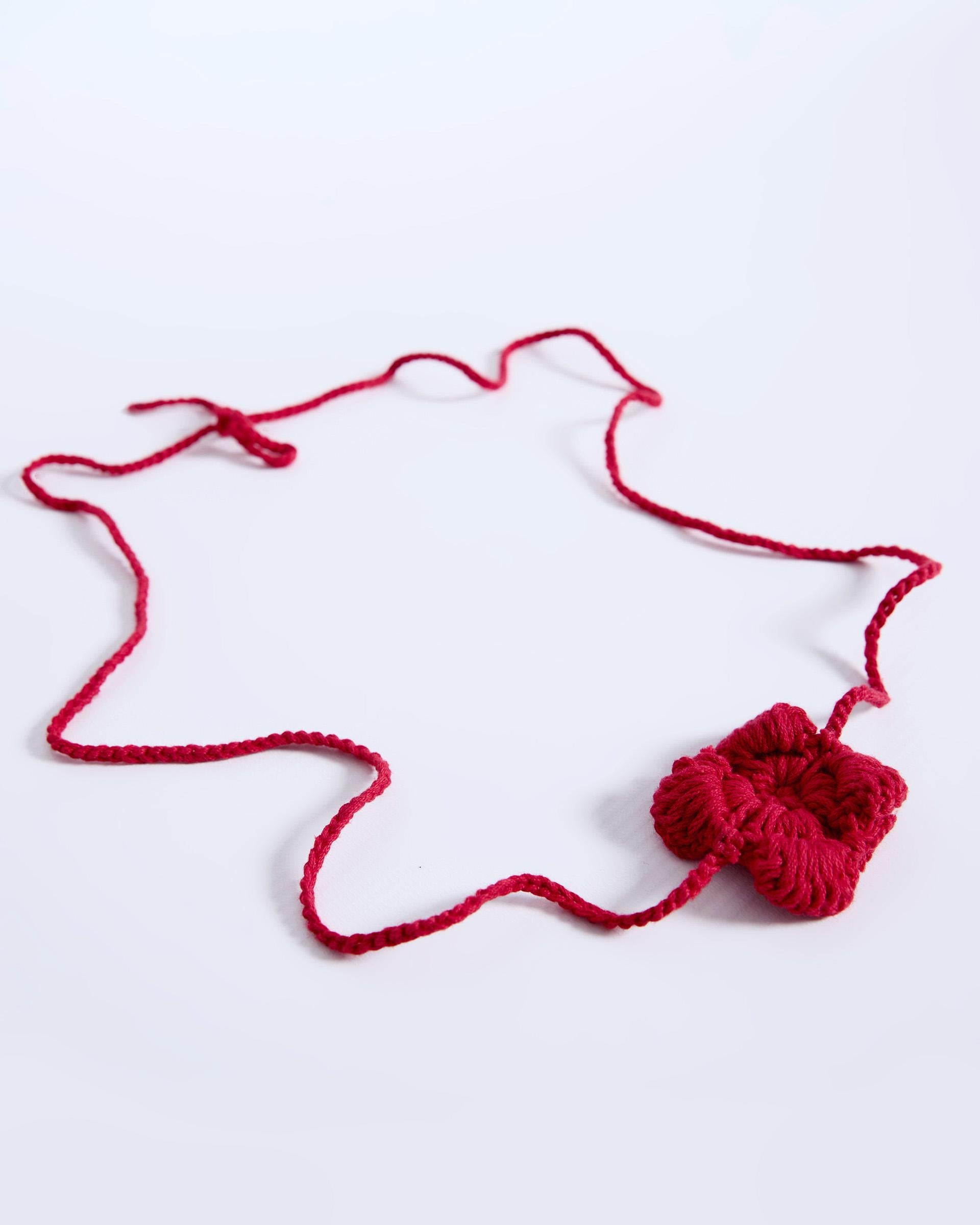 Red crochet flower-shaped necklace.