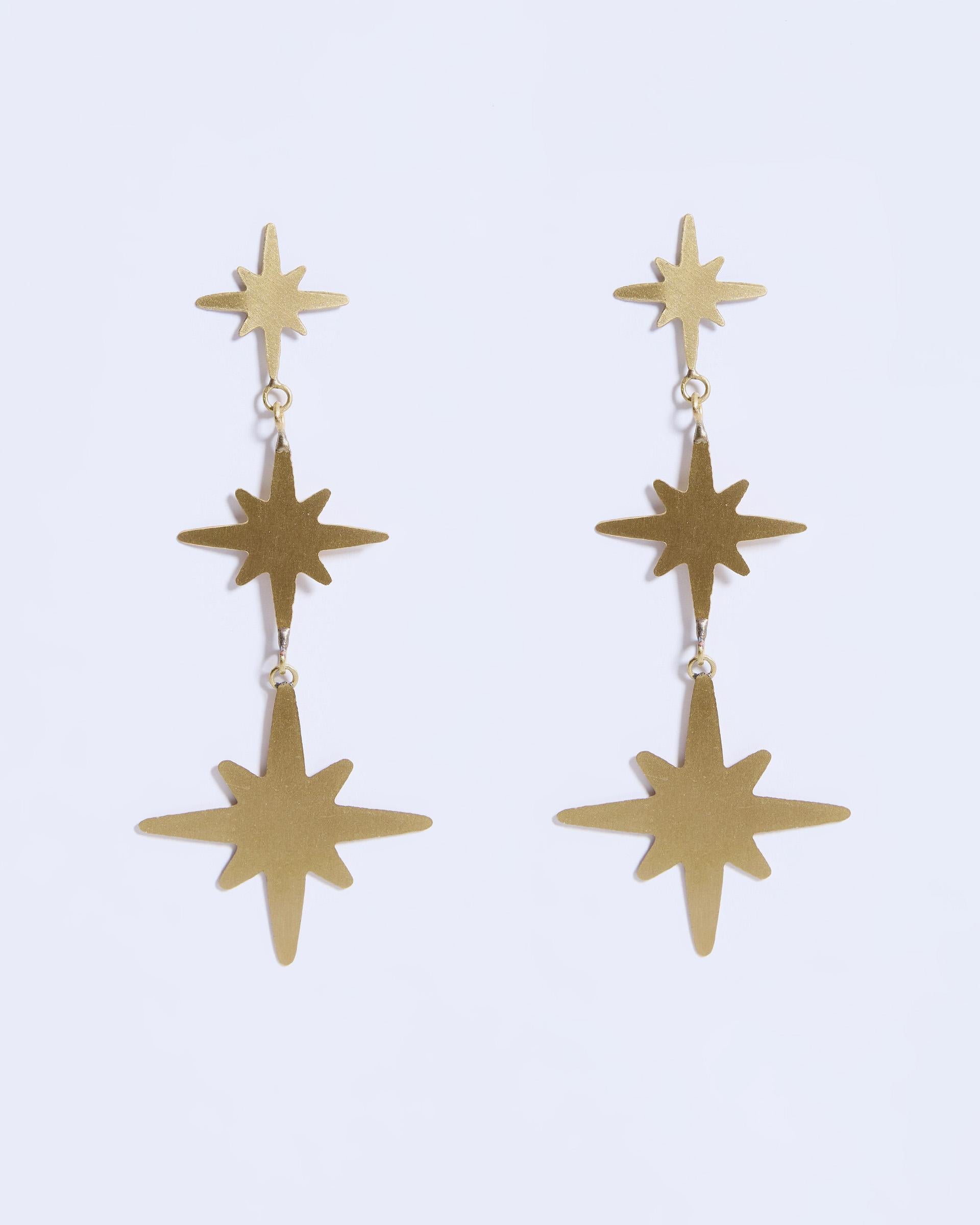 Triple Star Gold Earrings