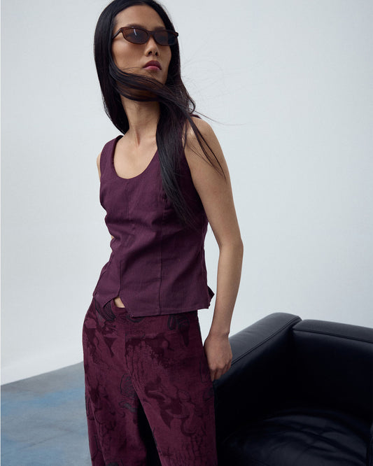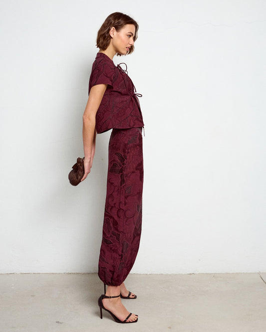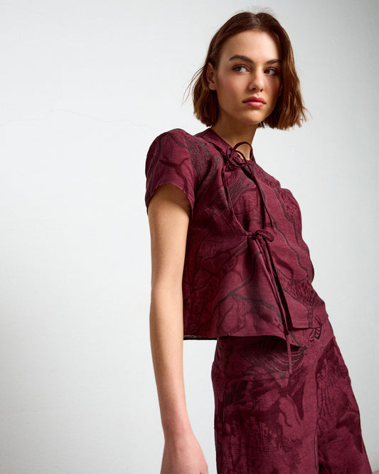 • Honeycomb Blouse with Burgundy Checkered Collar