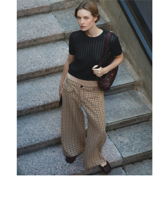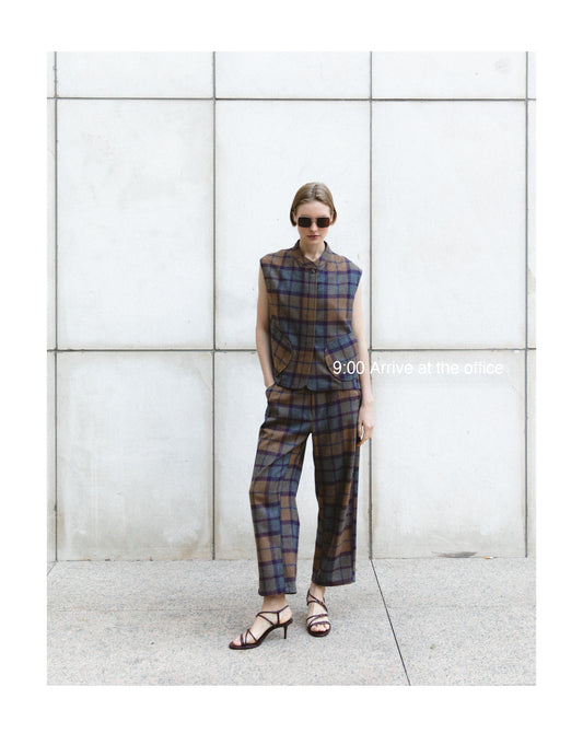- Checkered Vest with Camel Pockets