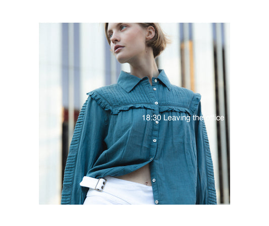 - Blue Sleeved Pleated Blouse
