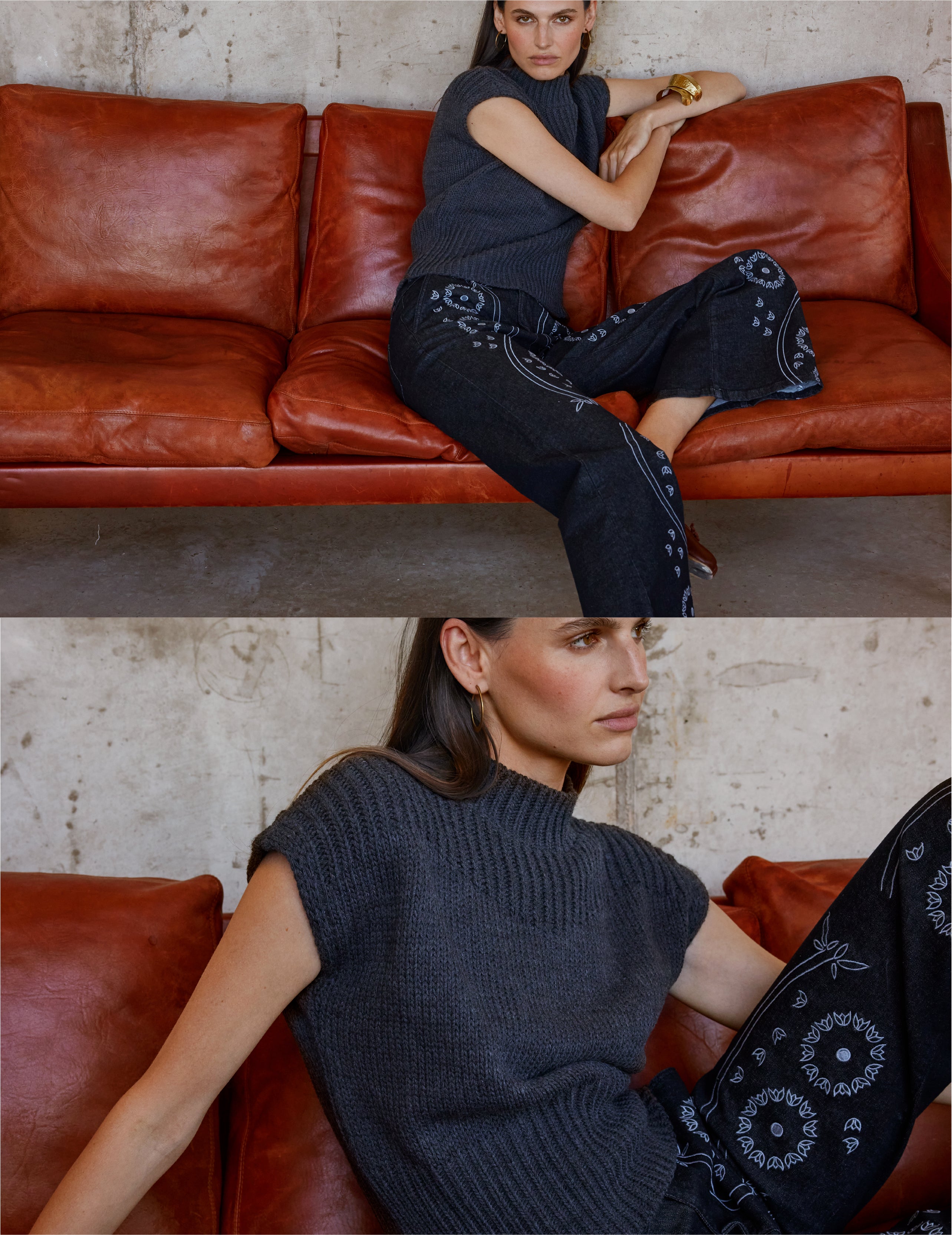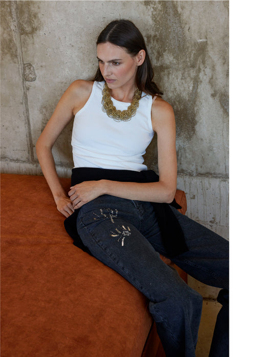Jeans with Pockets, Wide Leg, Blue Stitching