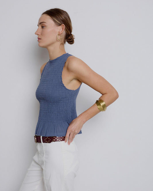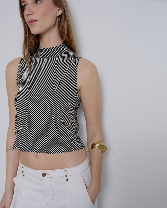 • Sleeveless Top with Side Buttons in Pale Pink Texture
