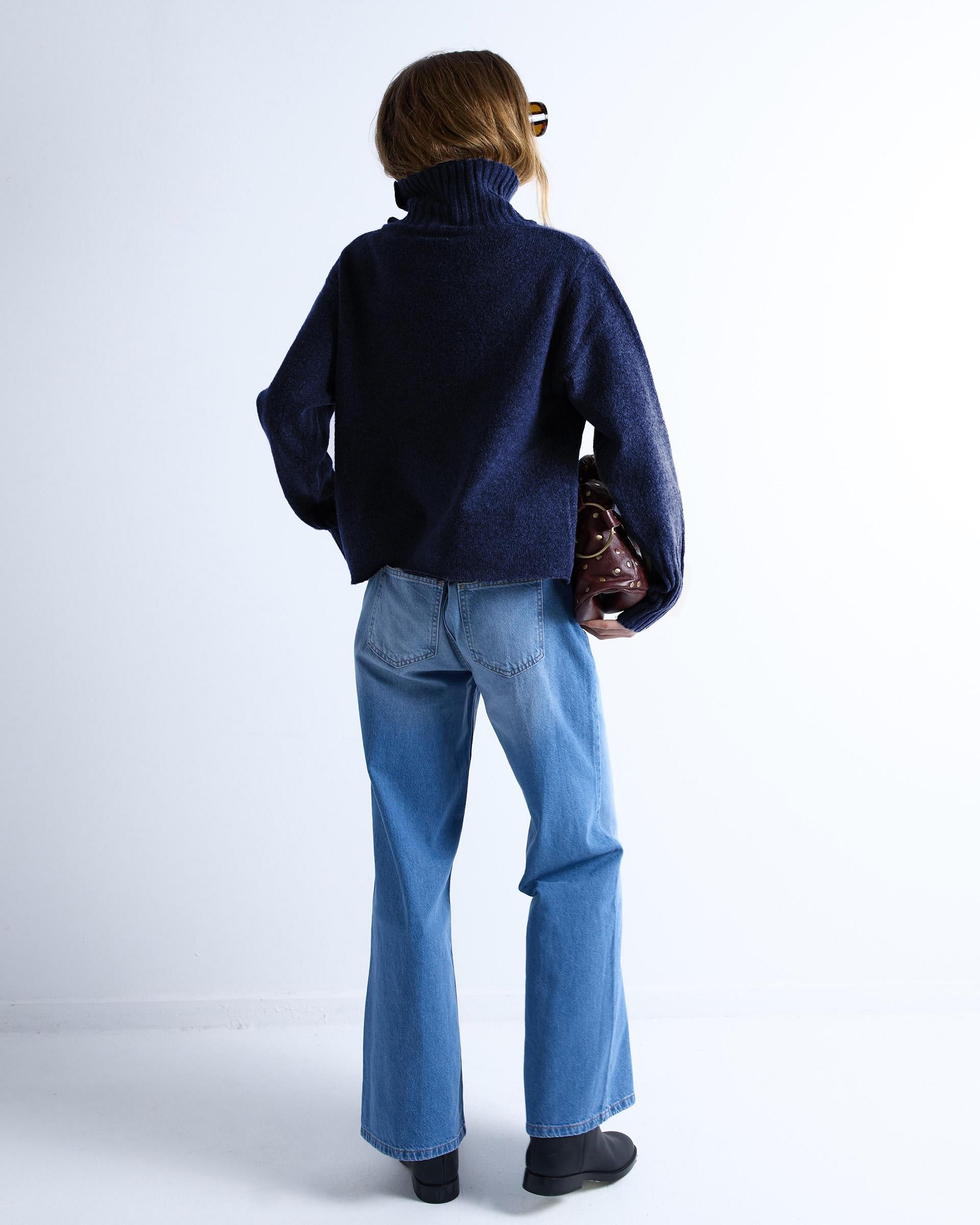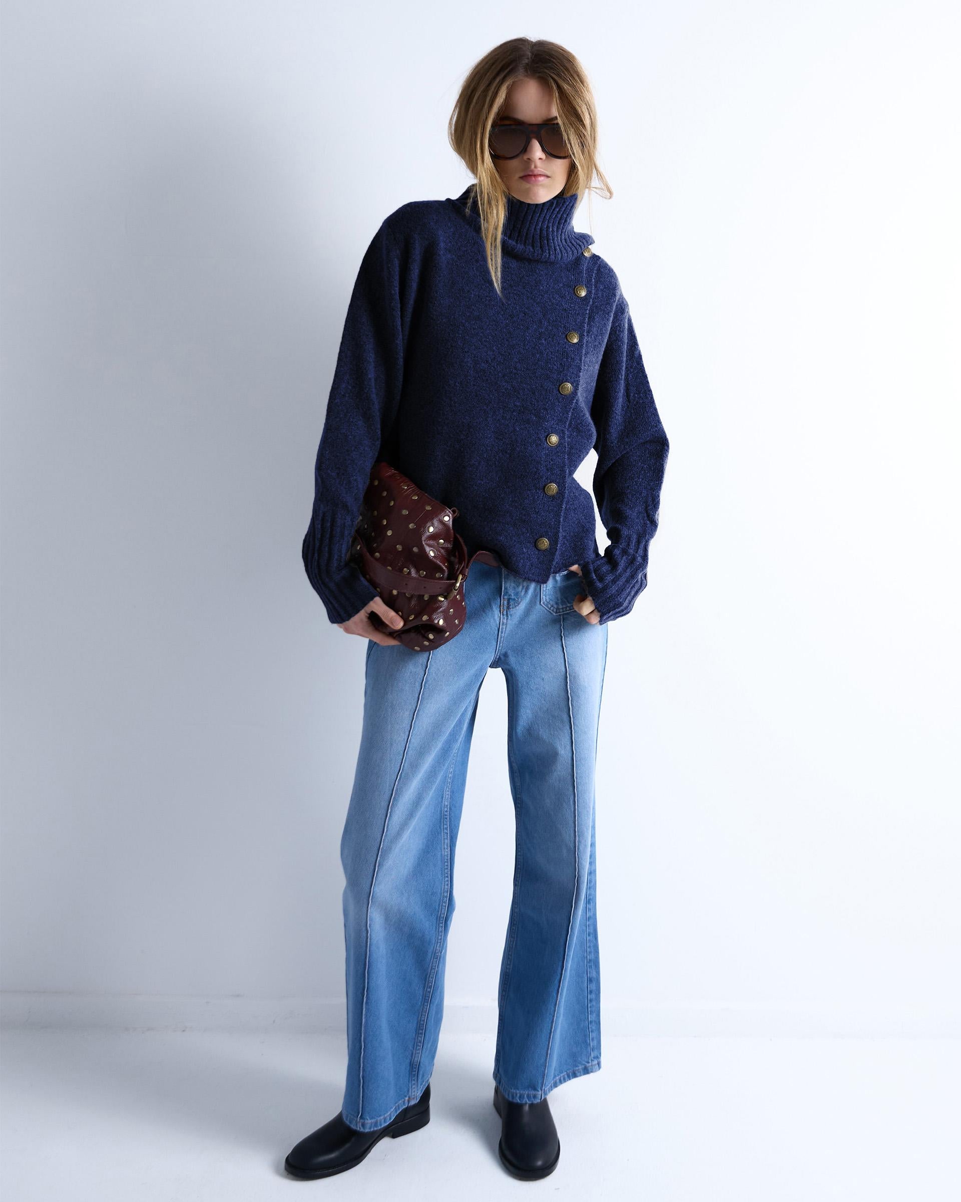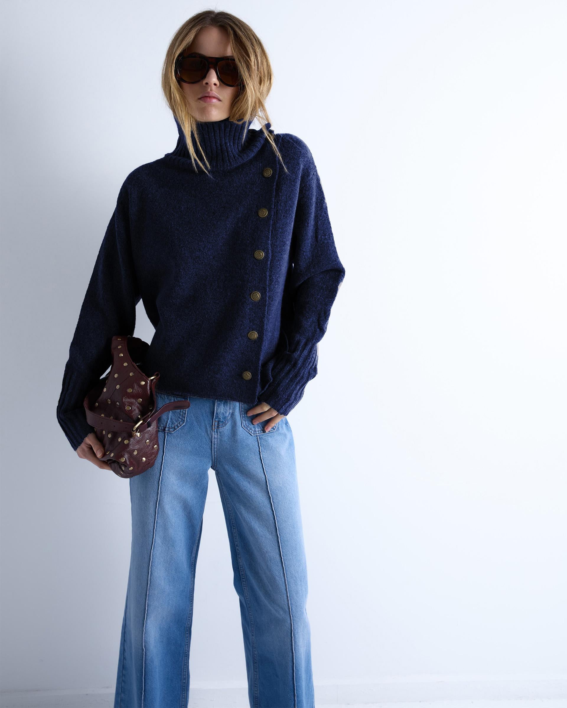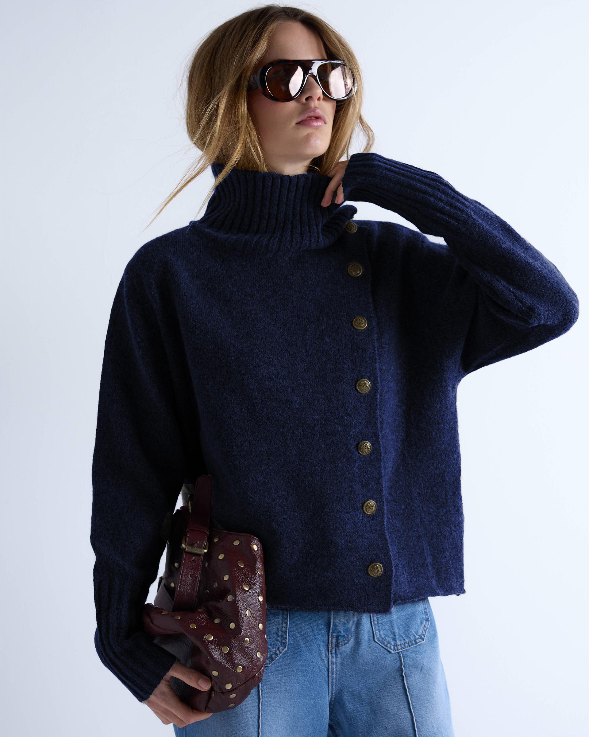 Jersey de punto de color azul marino con detalle de botones en lateral.
