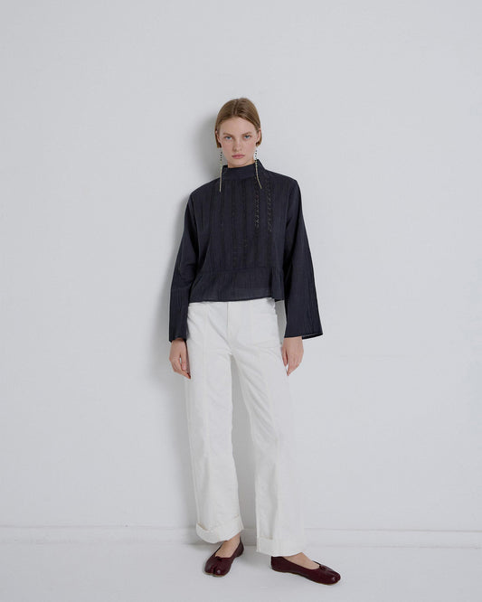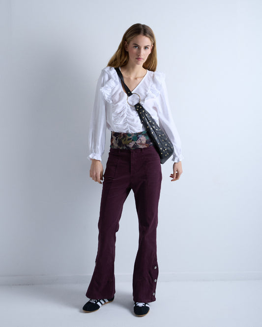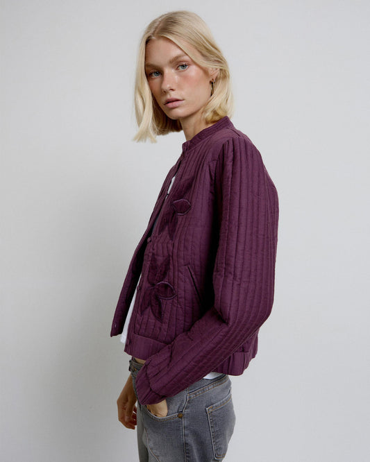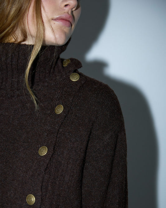 • Chaqueta Botones Puntilla Mezcla Lana Marrón