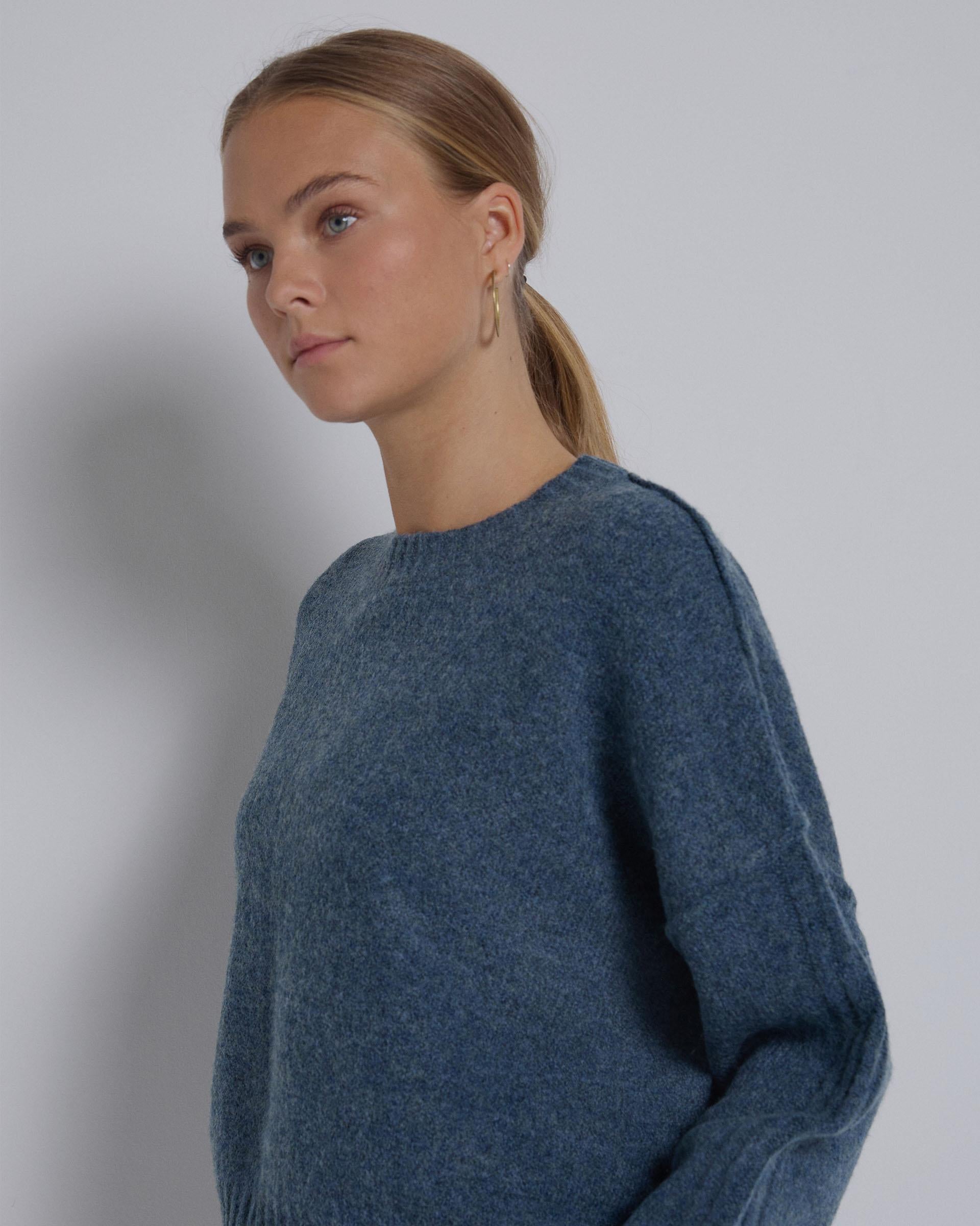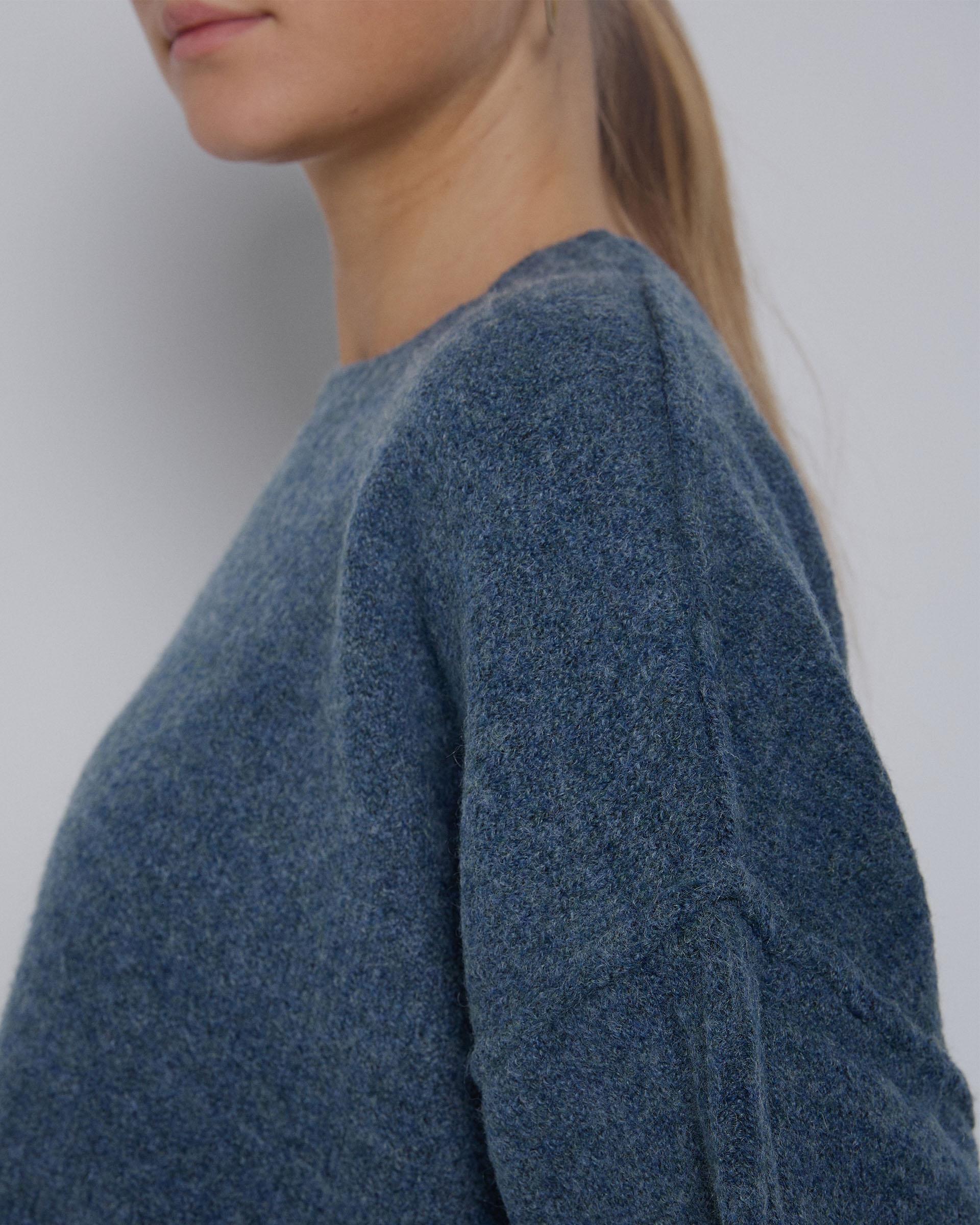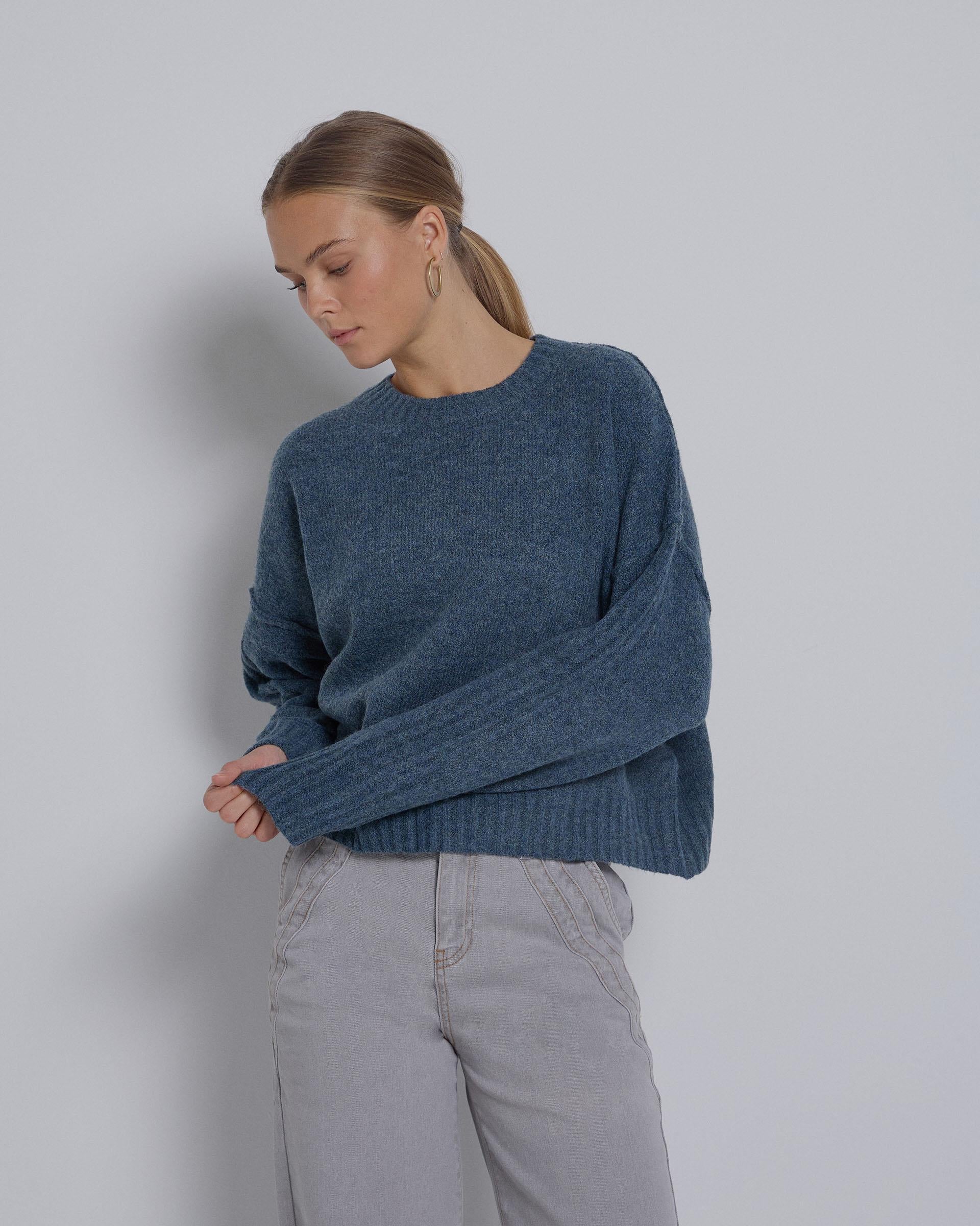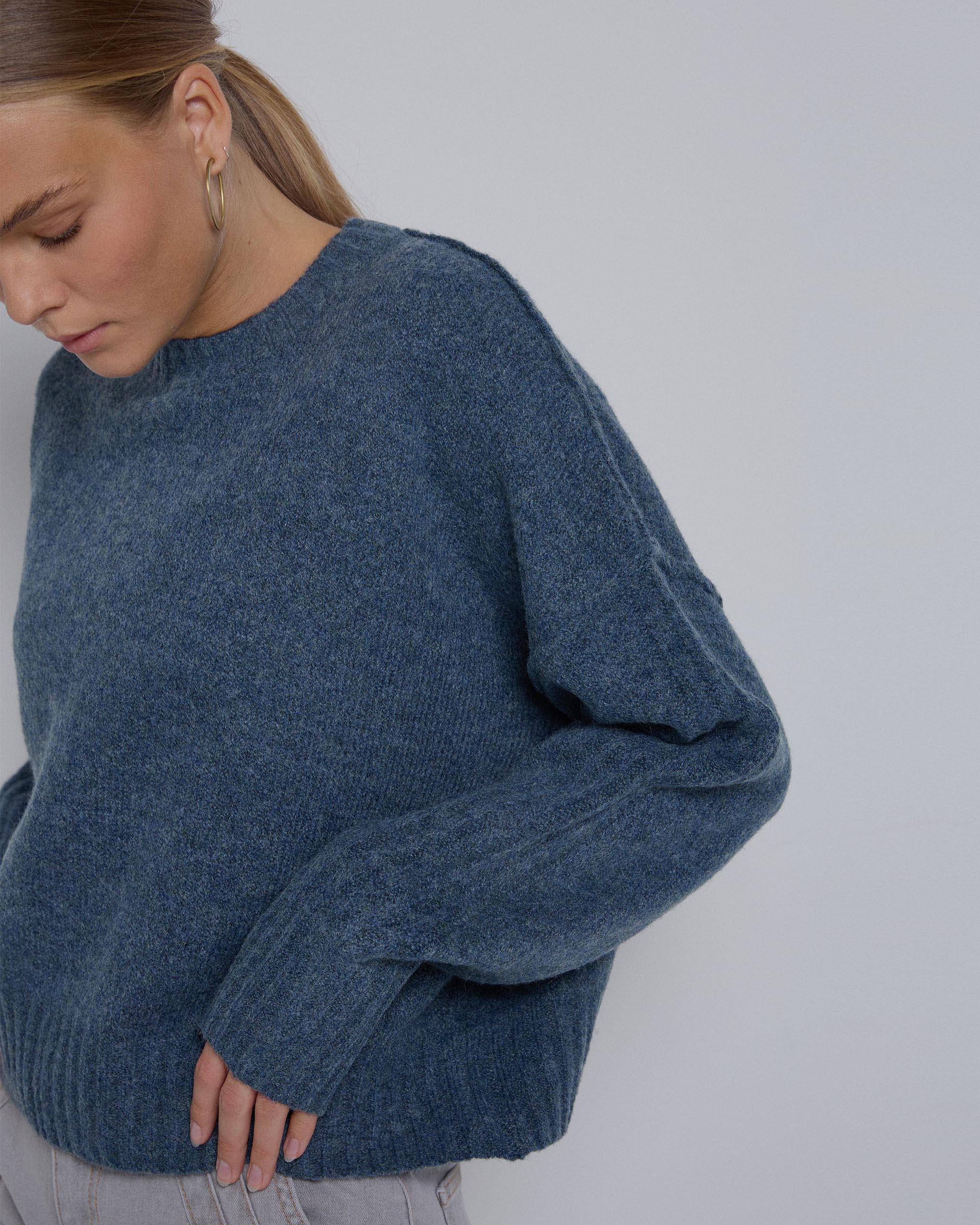 Jersey de punto ancho con costuras en vista de color azul.