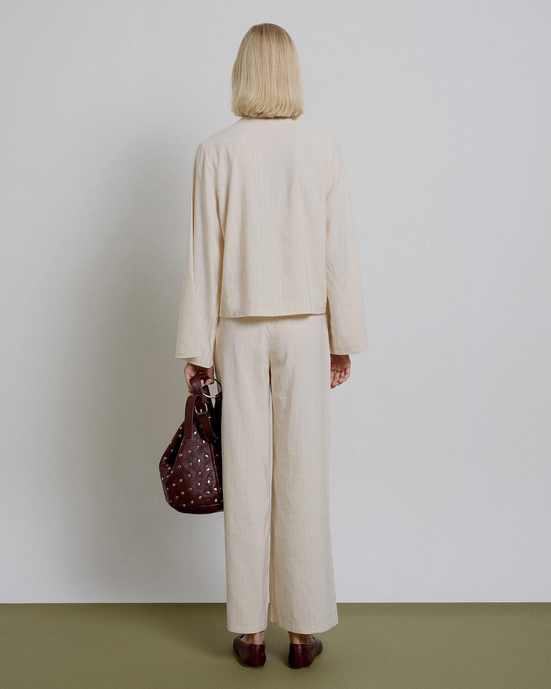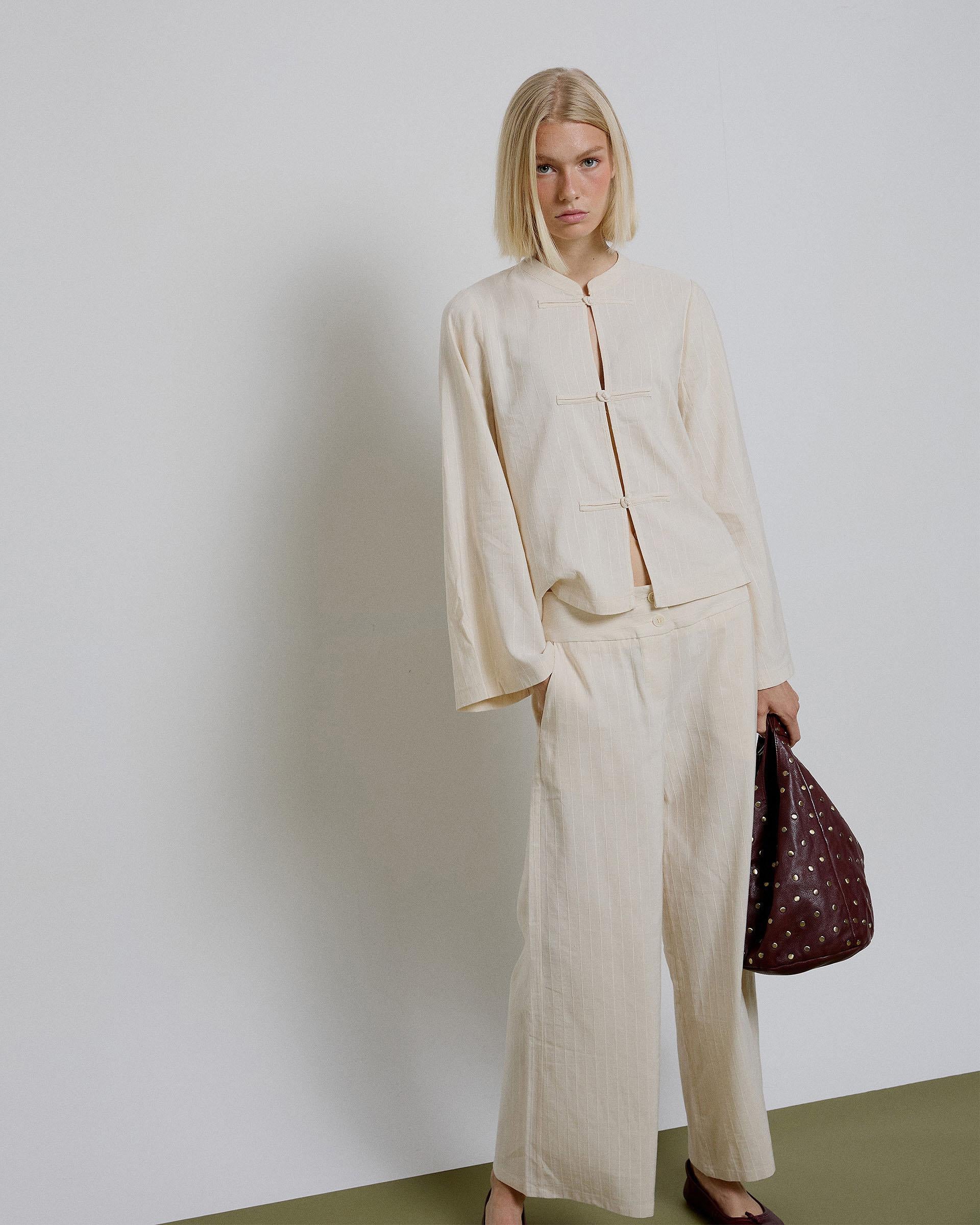 Pantalón Largo Rayas Doble Boton Crudo
