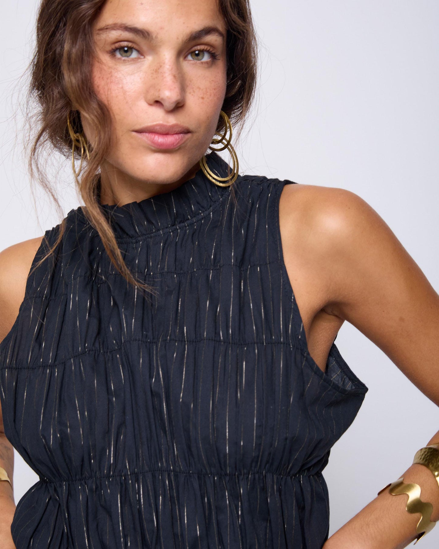 Top de color negro con detalle de lurex. Gomas y frunce en cuello.