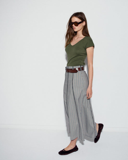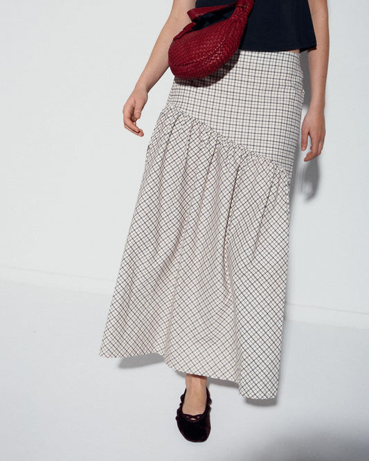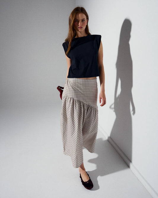 • Falda Canesú Asimétrico Cuadros Crudo