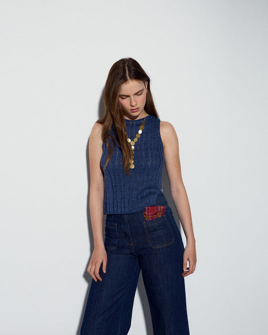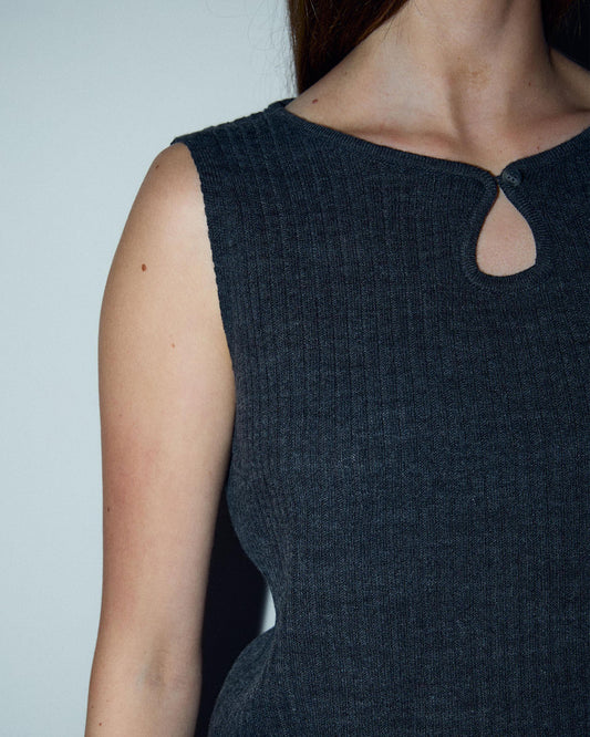 • Top Punto Escote Lágrima Sin Mangas Antracita
