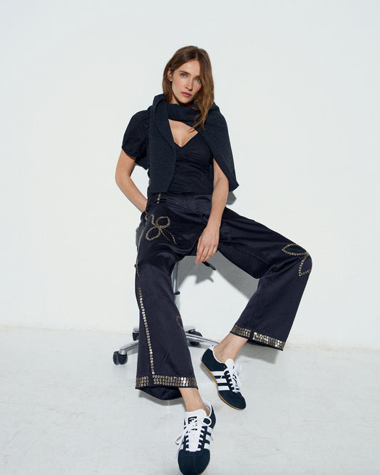 • Pantalón Satinado Lentejuelas Negro