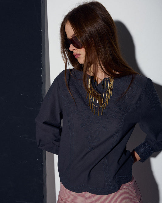 • Blusa Bordados Etnicos Antracita