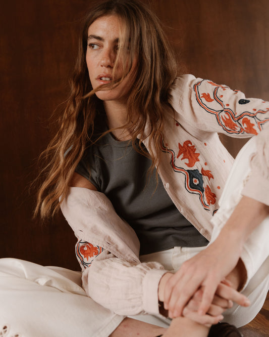 • Sobrecamisa Bordados Etnicos Rosa Palo
