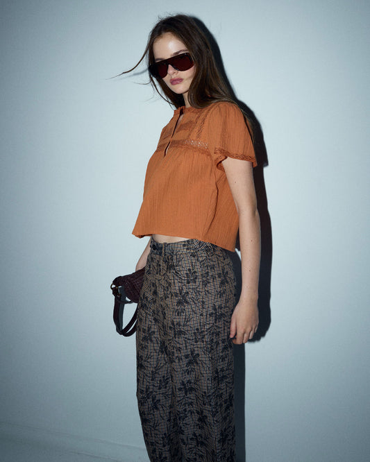 • Blusa Lazada Delantera Estampado Floral Marrón