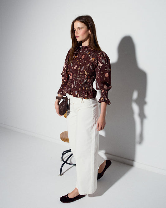 • Blusa Nido De Abeja Estampado Floral Marrón