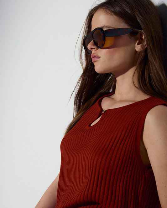 • Top Punto Escote Lágrima Sin Mangas Naranja