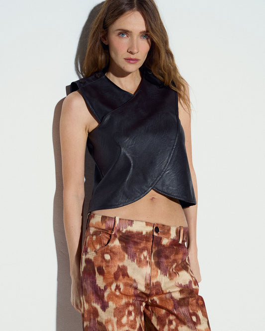 • Top Cruzado Efecto Piel Marrón