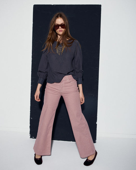 Pantalón Bordados Cinturilla Granate