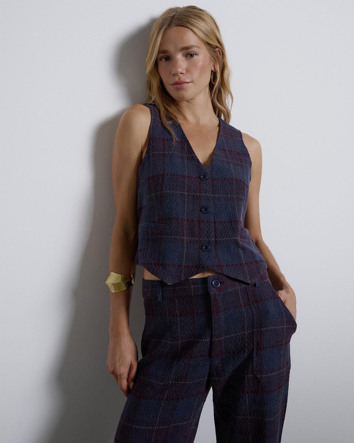 • Blusa Canesú Cuadros Azul Oscuro
