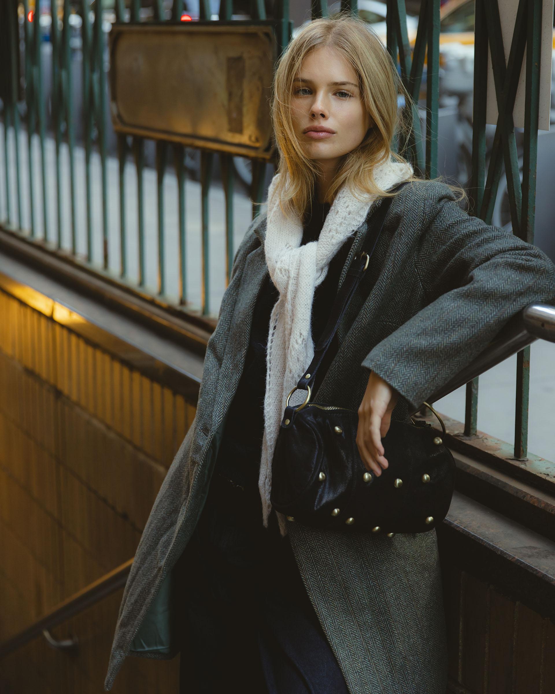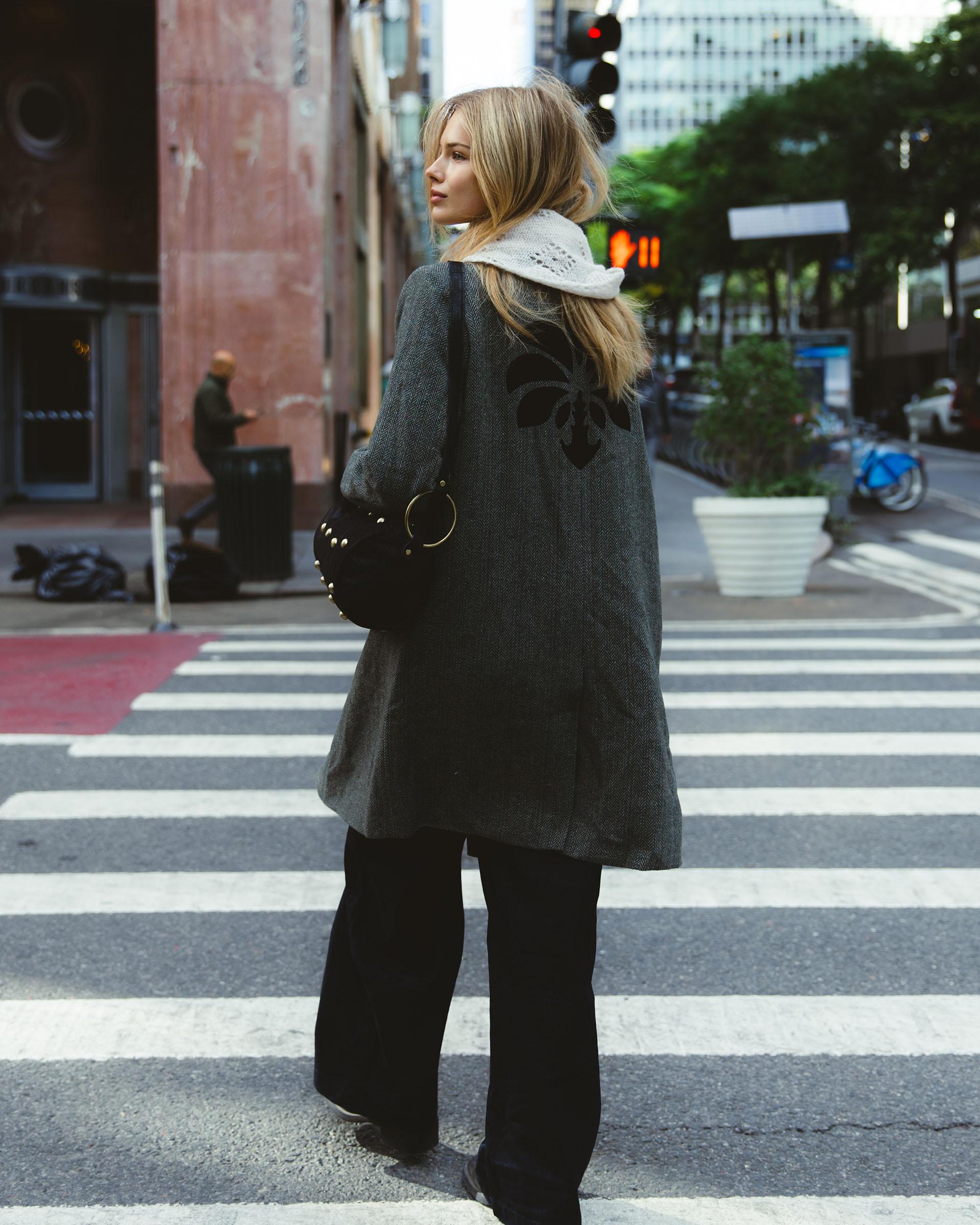Abrigo Bordado Espalda Mezcla Lana Petróleo